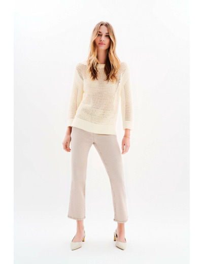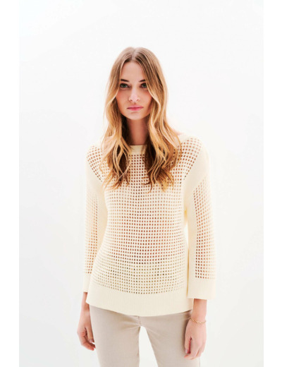 Le pull Mgeorgia, avec son design droit et mi-long, s'adapte à toutes les morphologies. Son aspect ajouré apporte une touche de féminité subtile. Parfait pour un style casual chic adapté à diverses occasions. - Pull droit mi-long - Col bateau - Manches 3/4 - Longueur 56,5 cm pour une taille S Idées look - Le pull Mgeorgia se marie bien avec un pantalon slim en denim et des mocassins pour une allure casual chic. - Ce pull droit mi-long peut être assorti à une jupe midi fluide et des bottines pour équilibrer élégance et confort. Conseil entretien Lavez ce pull à la main uniquement, le lavage en machine est interdit pour préserver la qualité de la maille. Le repassage est fortement recommandé : effectuez-le à basse température (maximum 110°) et n'utilisez pas de vapeur, car cela pourrait causer des dommages irréversibles. Il est également interdit d'utiliser le sèche-linge pour ce vêtement.