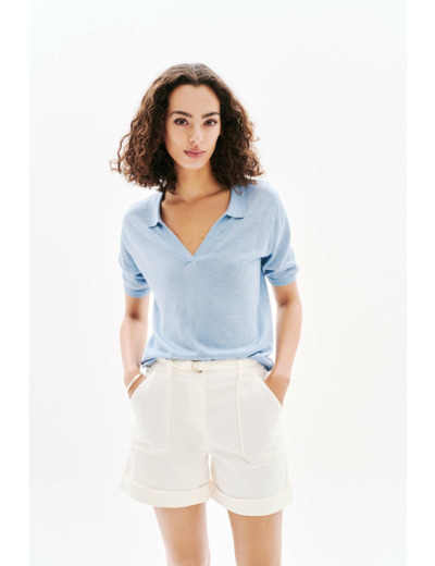 Le pull Mikalu, un indispensable au design droit qui épouse les lignes du corps. Tricoté en mélange de lin pour une légèreté adaptée à toutes saisons. Son effet brillant discret enrichit son style casual chic. - Pull droit - Col chemise - Manches coude - Longueur 57 cm pour une taille S Idées look - Le pull Mikalu se marie parfaitement avec un short blanc à taille haute et des sandales fines pour une allure casual chic. - Ce pull droit peut être combiné avec un jean brut et des mocassins en cuir pour un look quotidien élégant. Conseil entretien Lavez ce pull à la main uniquement, le lavage en machine est interdit. Le repassage est fortement recommandé : effectuez-le à basse température (maximum 110°) et sans vapeur pour éviter des dommages irréversibles. Il est interdit d'utiliser un sèche-linge pour ce vêtement.