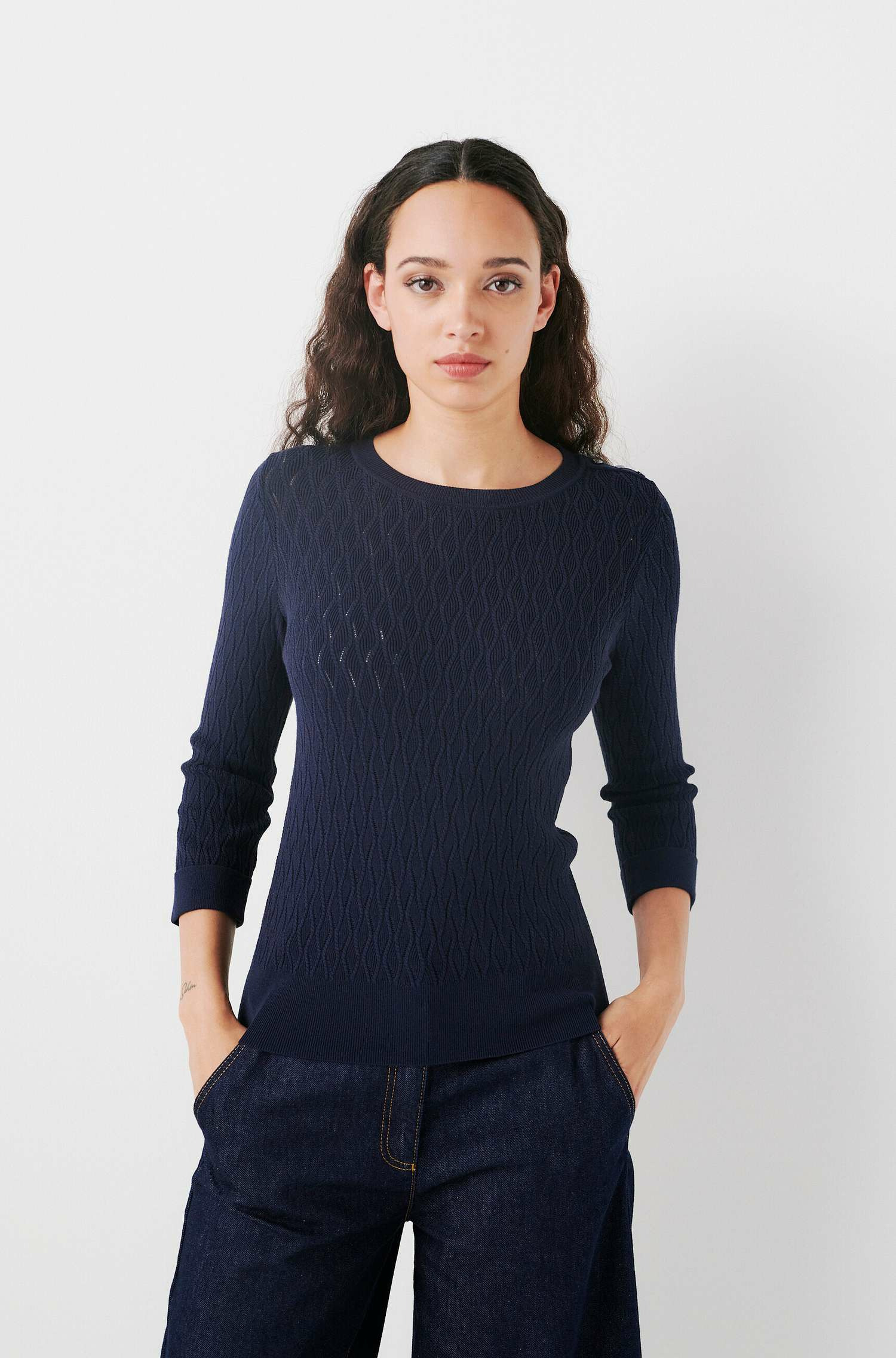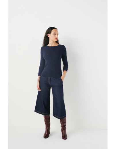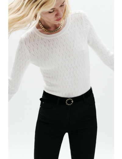 Le pull mjulietta présente des mailles torsadées et une couleur unie. Il possède une coupe droite. Confectionné en mélange de viscose, il offre une grande douceur et un confort inégalé. - Col rond - Manches 7/8ème - Longueur 60 cm pour une taille S - Finitions bords-côtes
