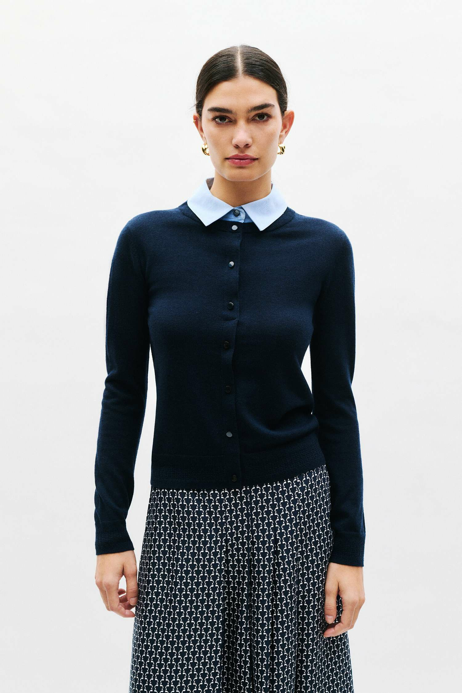 Le pull Mléa, un indispensable 2-en-1 pour votre garde-robe. En mélange de laine, son design droit se marie parfaitement avec un style Casual chic ou Working girl. Il suit les lignes naturelles du corps tout en offrant une aisance agréable. - Pull droit - Col chemise - Manches longues - Longueur 57 cm pour une taille S - Design 2-en-1 Idées look - Le pull Mléa peut être assorti à une jupe mi-longue imprimée et des bottes en cuir pour un look casual chic. - Ce pull droit court s'associe parfaitement avec un pantalon ajusté et des escarpins pour une tenue working girl élégante. Conseil entretien Lavez ce pull à la main uniquement, le lavage en machine est interdit pour préserver la qualité de la laine. Le repassage est fortement recommandé : effectuez-le à basse température (maximum 110°) et n'utilisez pas de vapeur, car cela pourrait causer des dommages irréversibles. Il est également interdit d'utiliser un sèche-linge pour ce vêtement.
