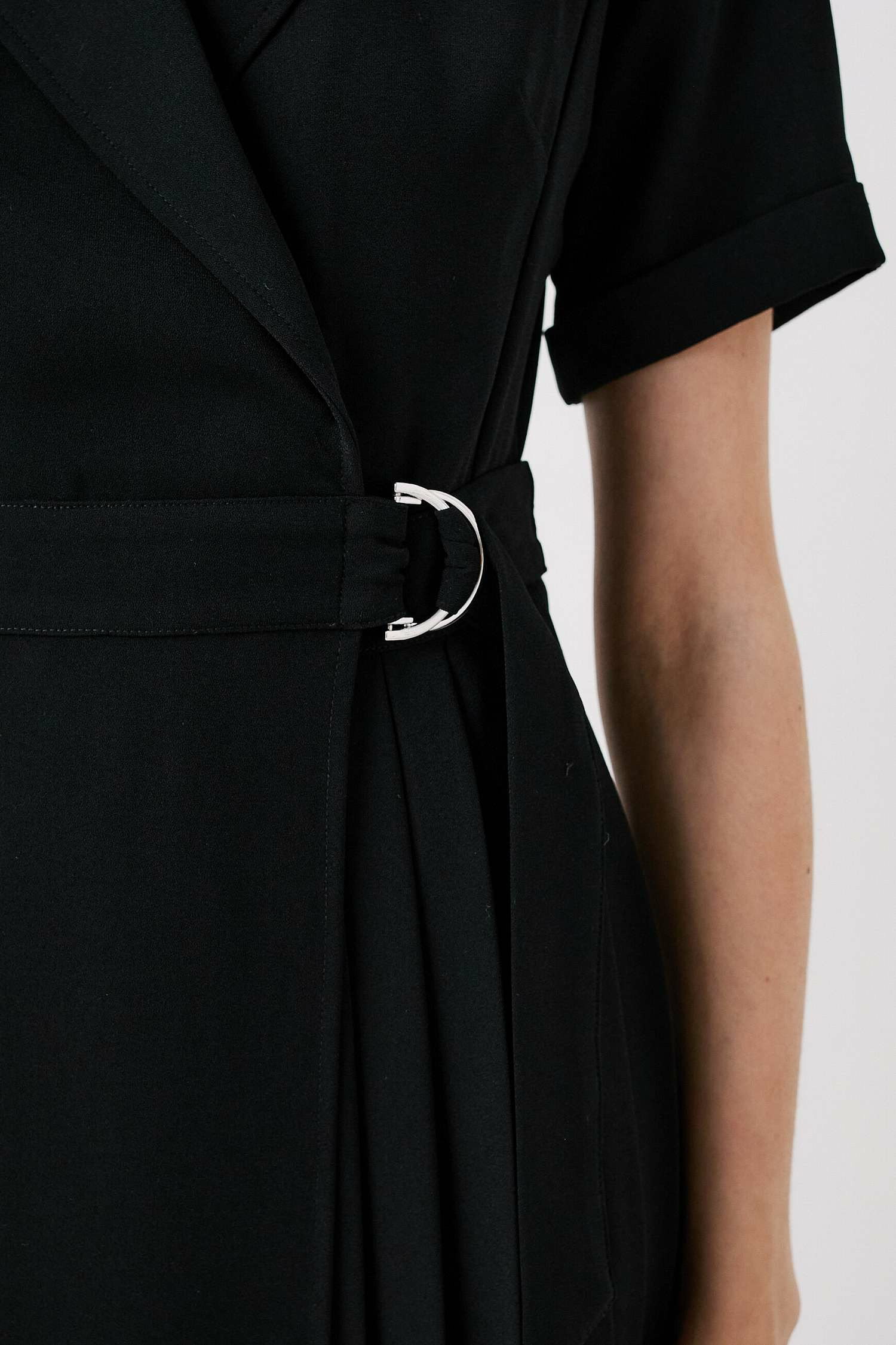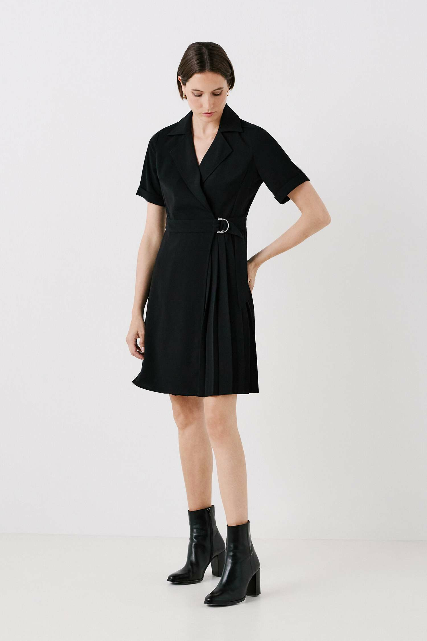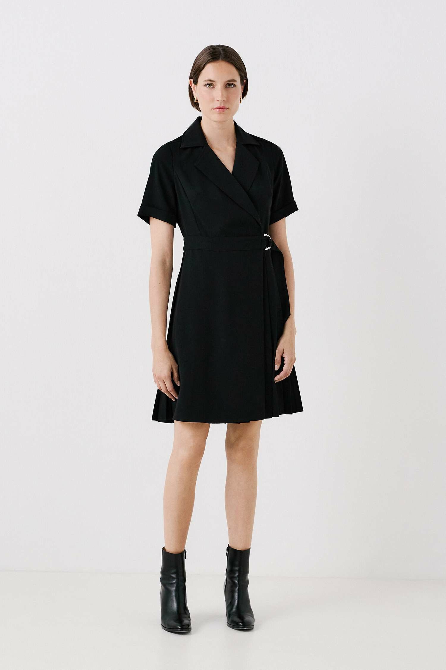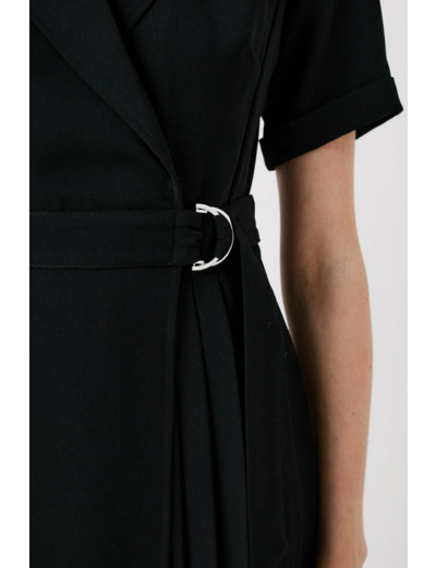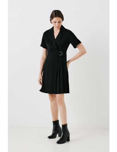 La robe rabelle présente une couleur unie et élégante. Sa coupe courte effet portefeuille met en valeur la silhouette. - Col tailleur - Manches courtes - Ceinture avec boucle - Découpe plisée latérale - Longueur 95 cm pour uen taille 38