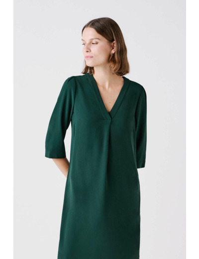 La robe Ramelo réinvente l'élégance au travail. Courte, elle propose un style chic décontracté. Idéale pour une allure working girl moderne, elle s'adapte à vos journées de travail. - Robe courte - Col V - Manches courtes - Longueur 95,5 cm pour une taille 38 - Tailles du 36 au 46 Idées look - La robe Ramelo s'accorde avec des escarpins en cuir et un sac à main structuré pour une tenue chic de bureau. - Cette robe peut être combinée avec des sandales plates et un chapeau large pour une allure décontractée lors d'une sortie en ville. Conseil entretien Pour préserver la qualité de votre robe Caroll, le nettoyage à sec par un professionnel en pressing est très fortement recommandé pour prolonger sa durée de vie. Toutefois, vous pouvez également opter pour un lavage délicat à 30°C. Le repassage est possible il doit se faire à basse température (maximum 110°) et sans vapeur, car celle-ci pourrait causer des dommages irréversibles. Il est interdit d'utiliser le sèche-linge pour ce vêtement.
