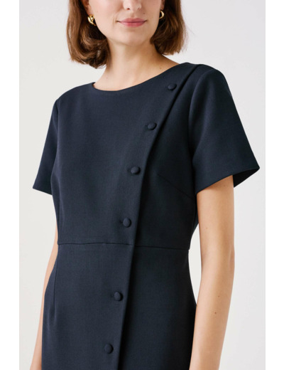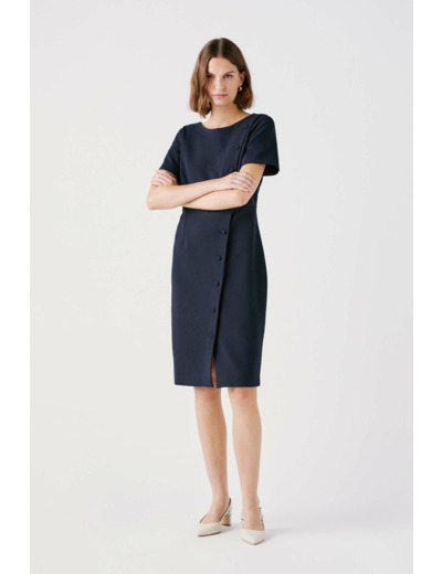 La robe Rdebby, un essentiel pour une allure professionnelle. De forme droite, elle allonge la silhouette avec élégance. Son style Working girl est parfait pour un look soigné. Sa coupe courte apporte dynamisme et modernité à votre tenue. - Robe courte - Coupe droite - Col rond - Manches courtes - Longueur 103 cm pour une taille 38 - Doublée Idées look - La robe Rdebby s'accorde avec un blazer structuré et des escarpins pour une tenue professionnelle raffinée. - Cette robe droite peut être assortie à des bottines en cuir et un sac porté épaule pour une allure chic au quotidien. Conseil entretien Pour préserver la qualité de votre robe Caroll, il est très fortement recommandé de privilégier un nettoyage à sec par un professionnel en pressing. Toutefois, vous pouvez également opter pour un lavage à 30°C en cycle délicat si nécessaire. Le repassage est possible réglez le fer à basse température (maximum 110°) et n'utilisez pas de vapeur, car cela pourrait endommager irréversiblement le tissu. Il est interdit d'utiliser le sèche-linge pour ce vêtement.