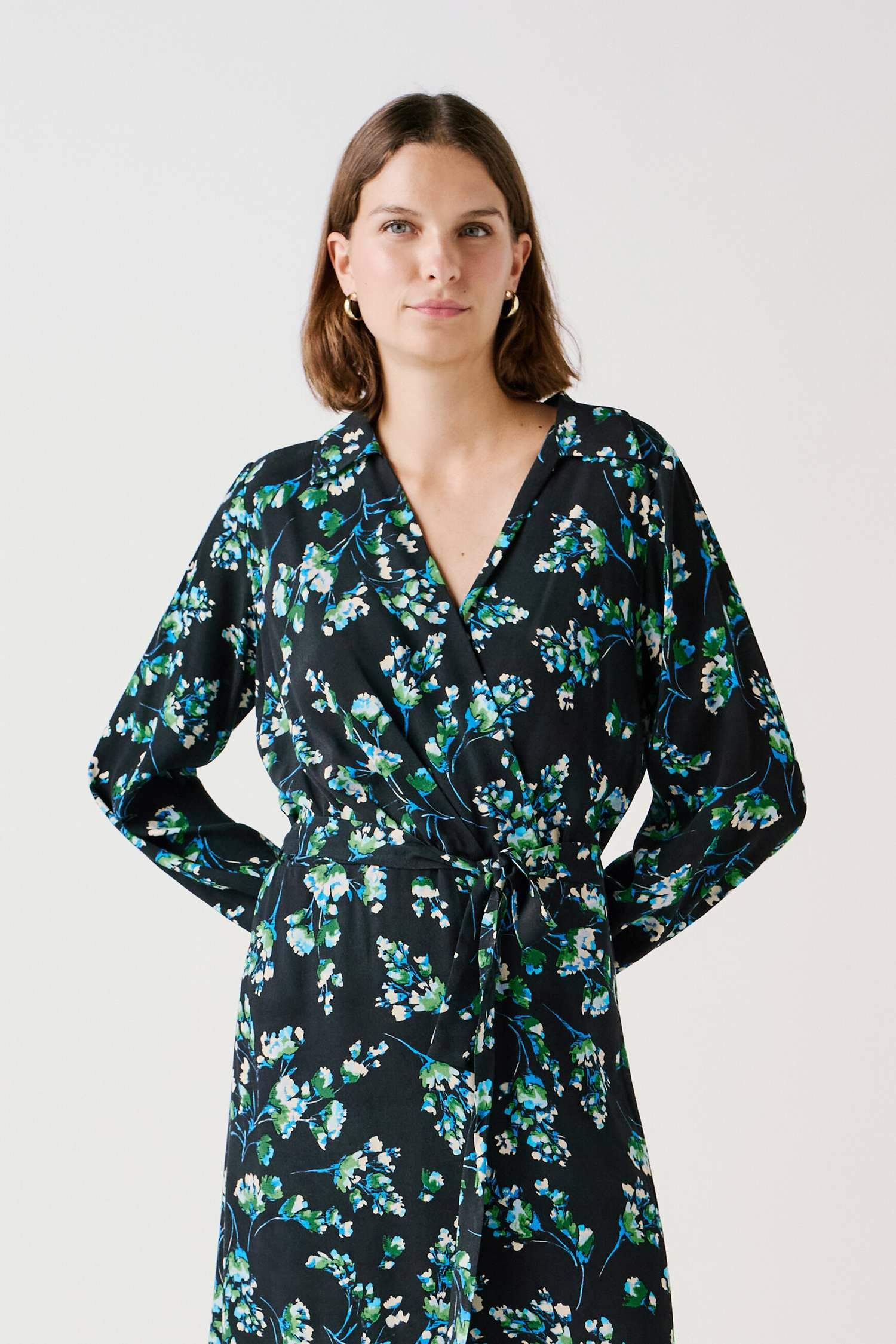 Avec sa confection en 100% viscose et sa coupe trapèze sublimante, la robe rdestiny vous enveloppe dans un tissu confortable et soyeux. Pièce courte parée d'un motif floral. - Col polo effet cache-coeur - Manches longues - Ceinture à nouer autour de la taille - Longueur 96 cm pour une taille 38 - Doublure : 100% viscose