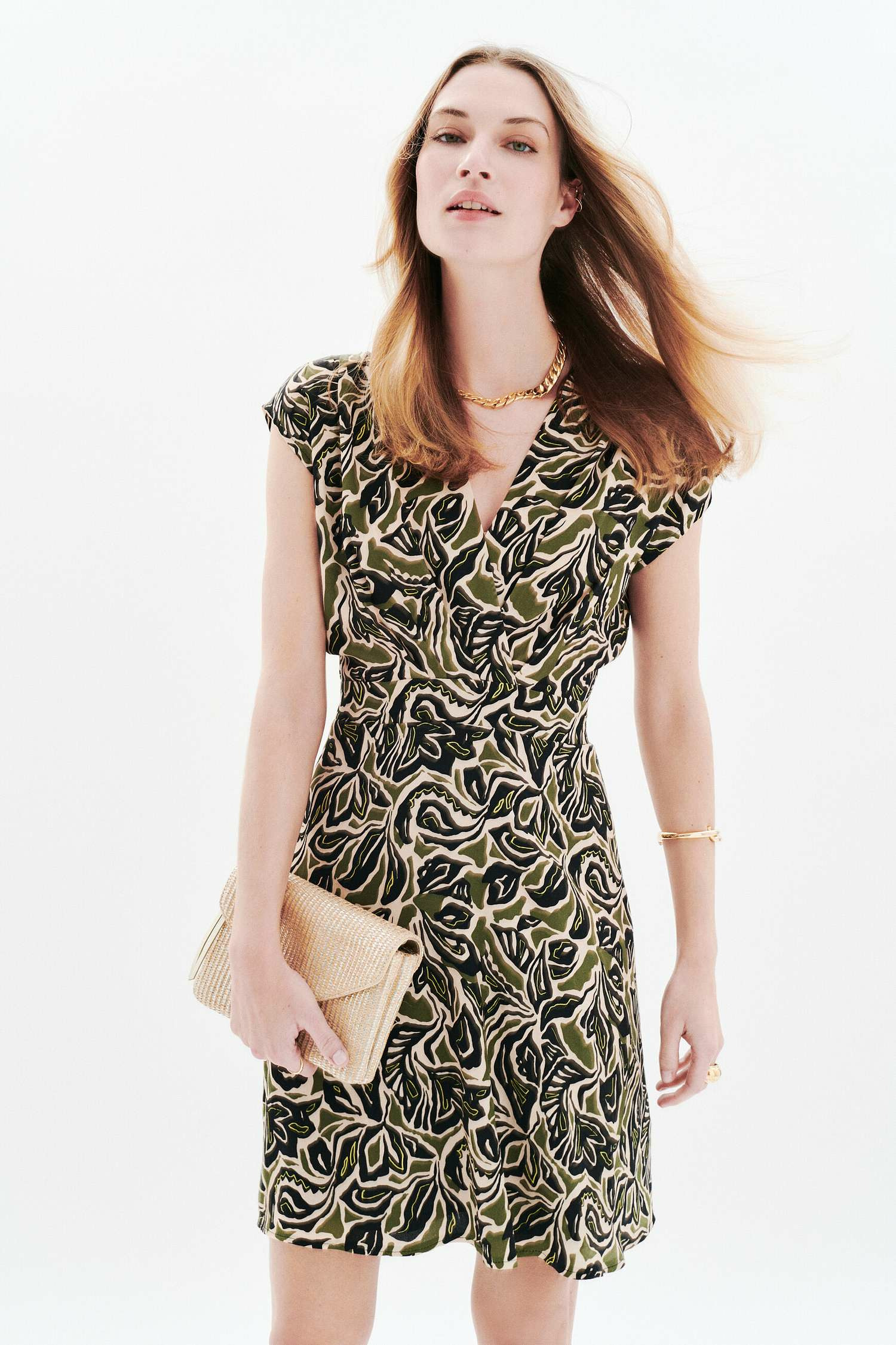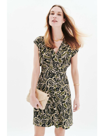 La robe Richie, fluide et courte. Elle met en valeur le haut du corps tout en floutant la taille. Son style chic décontracté convient à diverses occasions. Cette pièce allie élégance et confort au quotidien. - Robe courte - Coupe fluide - Col V - Manches courtes - Longueur 96 cm pour une taille 38 - Doublée Idées look - La robe Richie peut être associée à des escarpins à talon moyen et une pochette élégante pour une allure sophistiquée en soirée. - Ce modèle court se marie parfaitement avec une veste en cuir légère et des bottines à talons pour un style chic et décontracté au quotidien. Conseil entretien Lavez votre robe à 30°C en cycle délicat pour protéger les fibres du tissu. Le repassage est recommandé : vous pouvez le faire à haute température, jusqu'à un maximum de 200°. Il est interdit d'utiliser le sèche-linge et de procéder à un nettoyage à sec en pressing.