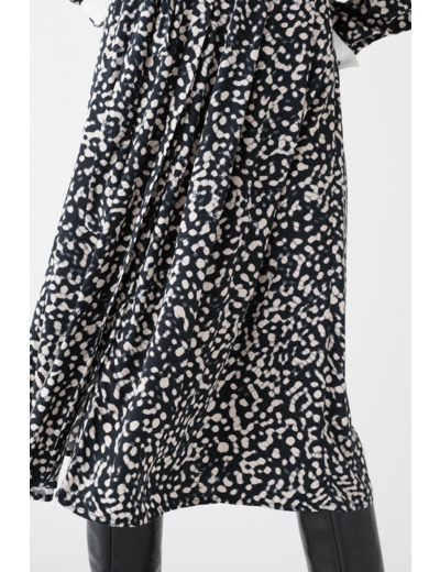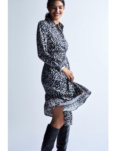La robe Rilesta, essentielle pour un style chic. Sa coupe évasée sublime le haut du corps et floute la taille avec élégance. Sa longueur 3/4 est parfaite pour toutes les occasions. Un choix judicieux pour votre garde-robe professionnelle. - Longueur 115 cm pour une taille 38 - Coupe évasée - Col chemise - Manches longues - Tailles du 34 au 46 Idées look - La robe Rilesta s'accorde avec des bottes hautes en cuir pour une tenue élégante et structurée. - Cette pièce indispensable se combine parfaitement avec un blazer ajusté, idéal pour renforcer son allure workwear. Conseil entretien Lavez votre robe à 30°C en cycle délicat pour protéger les fibres du tissu. Le repassage est possible : effectuez-le à une température moyenne, maximum 150°. Il est interdit d'utiliser le sèche-linge.
