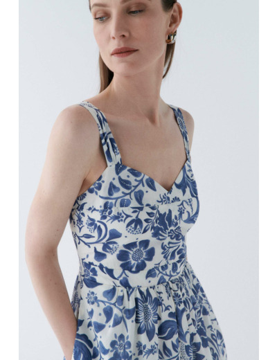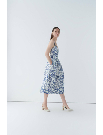 Laissez-vous charmer par la robe ritzilon et la fraîcheur de son motif floral. Avec sa coupe midi, cette robe confectionnée en coton allie style, confort et légèreté. - Col en V - Bretelles - Taille marquée par un élastique - Longueur à mi-mollet - Doublure 100 % viscose
