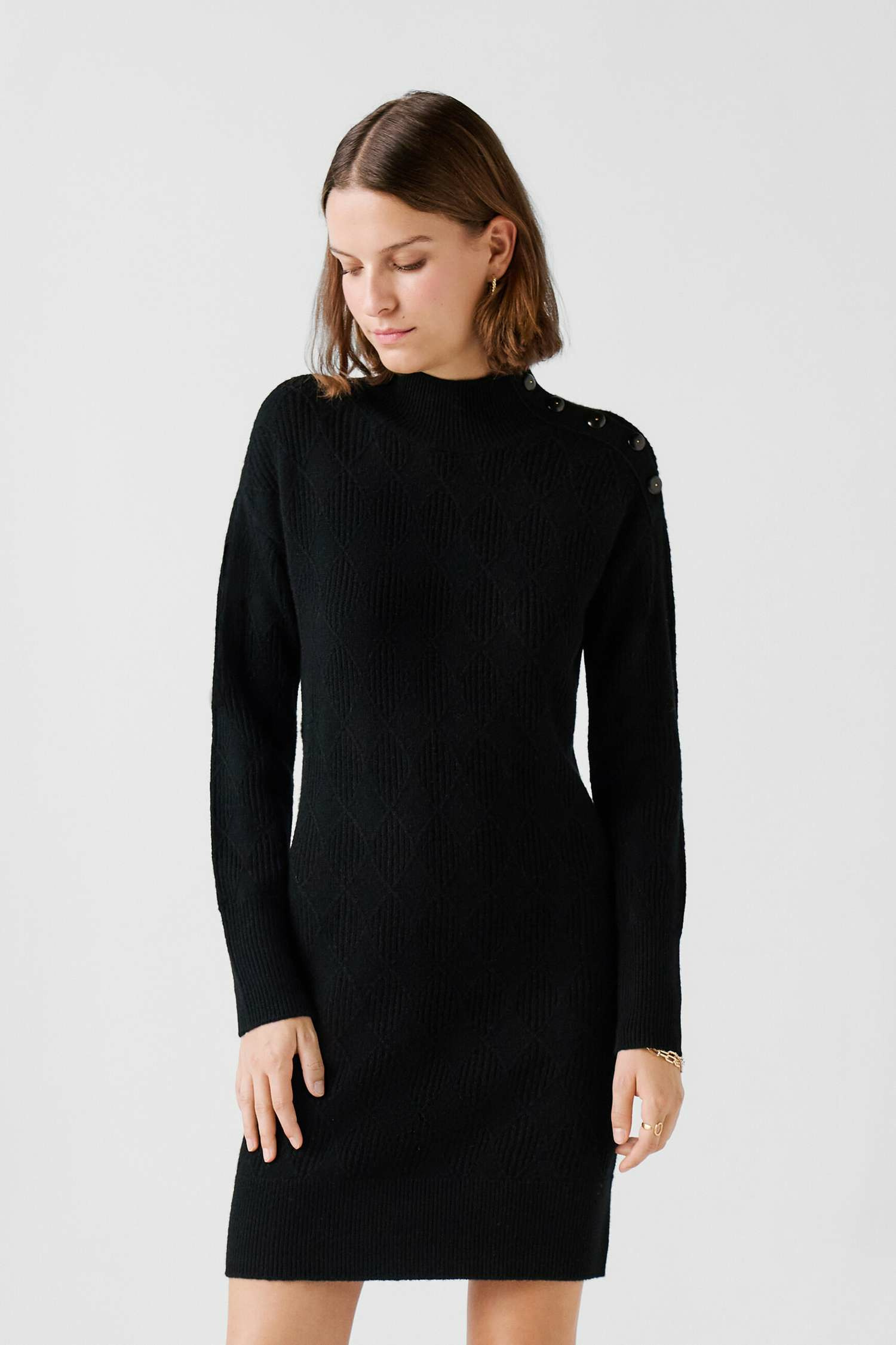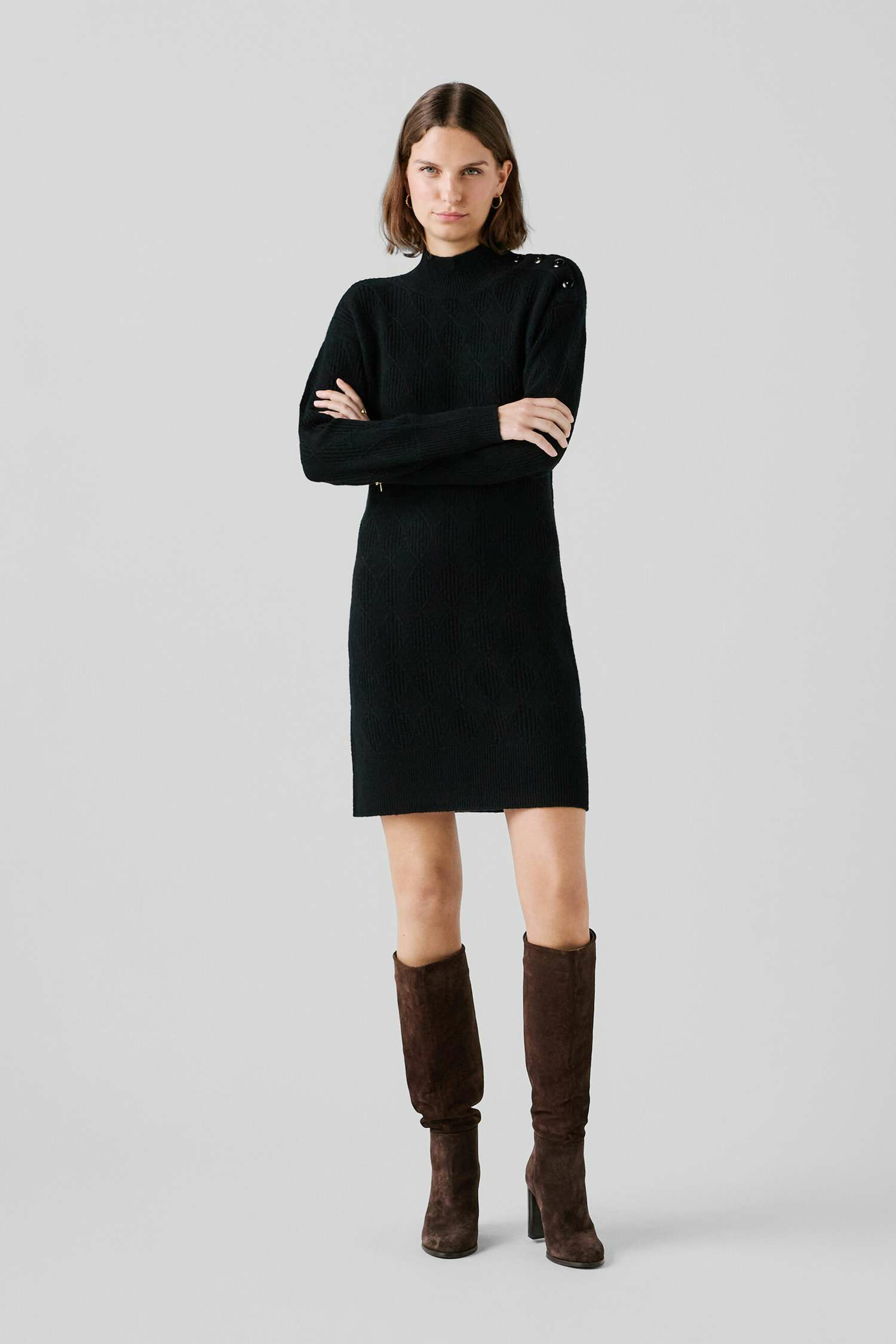 La robe Rmaeva mêle élégance et confort. En 100% laine douce au touché, elle vous offre une chaleur agréable. Sa forme droite allonge la silhouette, créant une ligne élancée. Courte, elle s'associe aisément à divers styles de chaussures pour toutes occasions. - Robe courte - Coupe droite - Col roulé - Manches longues - longueur 56,5 cm pour une taille S Idées look - La robe Rmaeva peut être portée avec une ceinture fine en cuir et des bottes hautes pour un look élégant. - Cette robe droite se combine parfaitement avec un blazer structuré et des escarpins pour une tenue de bureau chic. Conseil entretien Lavez cette robe en laine uniquement à la main, le lavage en machine est interdit pour préserver la qualité de la maille. Le repassage est possible : il est recommandé à basse température (maximum 110°) et sans vapeur. Il est interdit d'utiliser un sèche-linge ou de procéder à un nettoyage à sec.