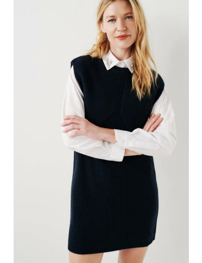 Craquez pour la pièce incontournable de la saison avec la robe rmilo. Avec sa coupe droite et courte féminine à souhait, sa teinte unie élégante ainsi que sa composition en laine mélangée, cette pièce d'exception vous assure confort et douceur. - Col rond - Sans manches - Empiècements texturés contrastants - Longueur 82 cm pour une taille S