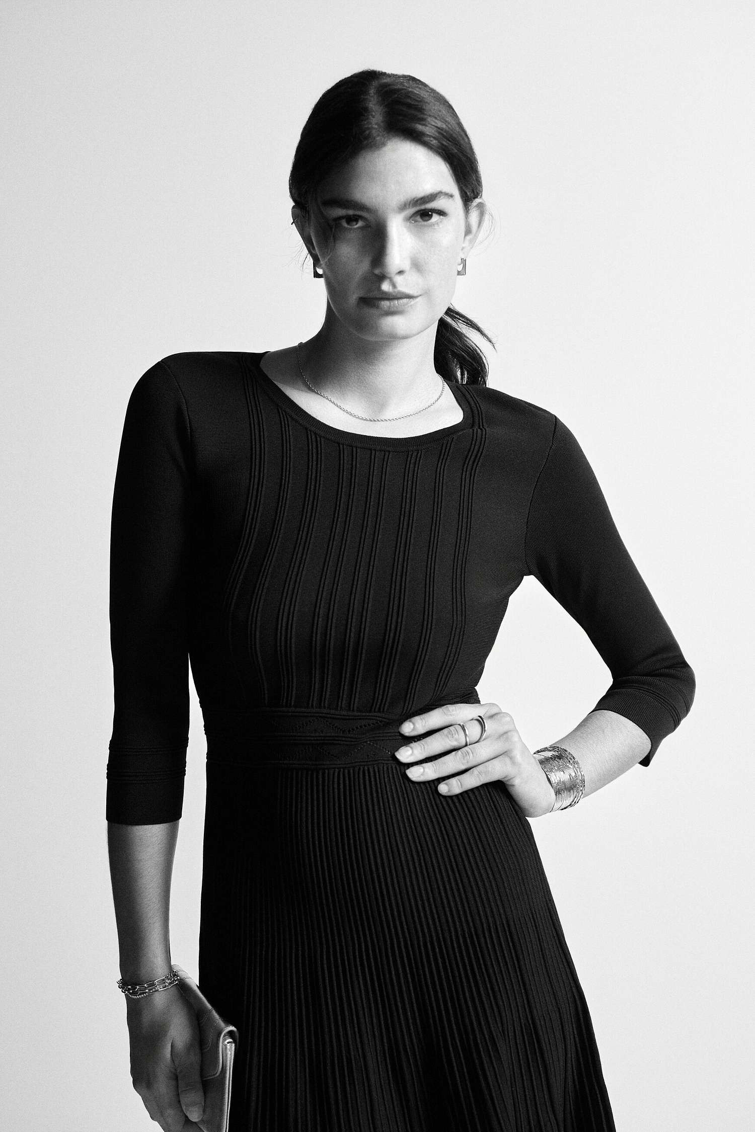 La robe Romeline, un choix élégant pour une allure working girl. Sa coupe évasée et fluide met en valeur le haut du corps tout en floutant la taille. Courte, elle souligne subtilement votre féminité. Son design plissé apporte une touche de raffinement à l'ensemble. - Robe courte - Coupe évasée - Col rond - Manches 3/4 - Longueur 92 cm pour une taille 38 Idées look - La robe Romeline s'accorde avec des bottes hautes en daim pour une allure féminine et élégante. - Ce modèle de robe peut être assorti à un blazer cintré et des escarpins pour un look working girl raffiné. Conseil entretien Lavez cette robe à la main uniquement, le lavage en machine est interdit pour préserver la qualité de la maille. Le repassage est possible : il doit s'effectuer à basse température (maximum 110°) et l'utilisation de vapeur est interdite. Il est également interdit d'utiliser un sèche-linge pour ce vêtement.