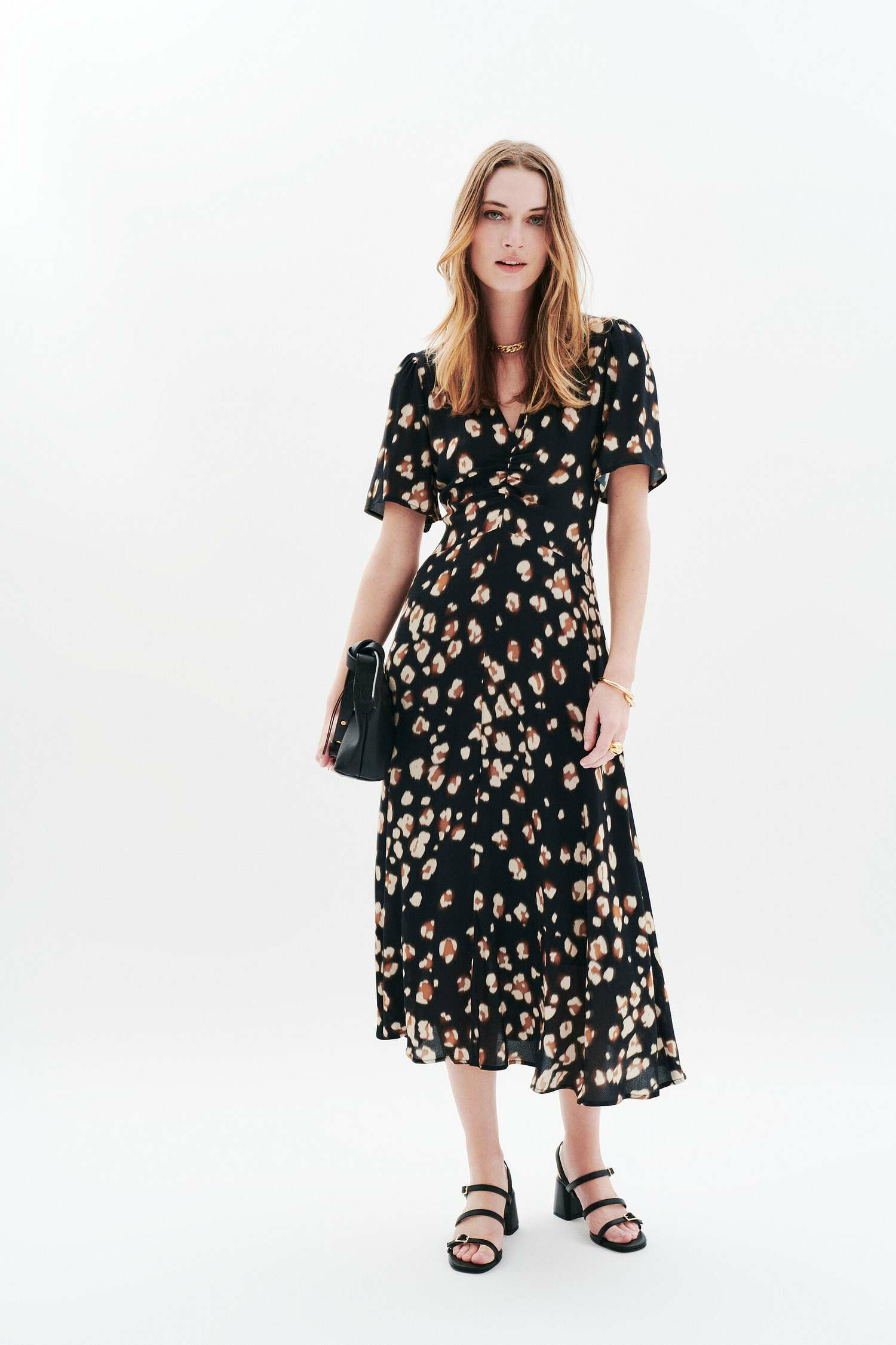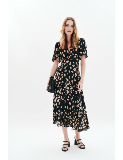 La robe Rosabella se distingue par ses détails raffinés et sa coupe flatteuse, idéale pour toutes les morphologies. Associez-la à des escarpins pour une soirée glamour ou à des ballerines pour une sortie décontractée. Son coloris polyvalent vous permet de l'accessoiriser selon vos envies, que ce soit avec une ceinture pour marquer la taille ou des bijoux délicats pour un look plus audacieux.