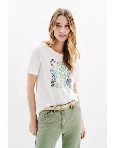 Réponse : Ce t-shirt est fabriqué en modal (50 %) et coton (50 %), pour un toucher doux et une bonne respirabilité.