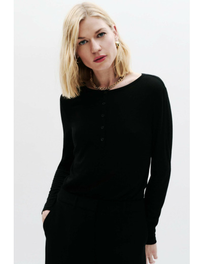 Le t-shirt Taiba, parfait pour vos journées de travail. En mélange de laine douce au touché, il vous assure chaleur et confort. Sa composition en laine offre une sensation agréable sur la peau. Facile à associer avec vos tenues professionnelles, ce modèle est un choix sûr pour le bureau. - T-shirt - Col rond - Manches longues - Longueur 60 cm pour une taille S Idées look - Le t-shirt Taiba peut être assorti à un pantalon de tailleur et des escarpins pour une tenue professionnelle raffinée. - Ce t-shirt en mélange de laine se marie parfaitement avec une jupe crayon et un blazer cintré, l'idéal pour les rendez-vous d'affaires. Conseil entretien Lavez ce t-shirt en mélange de laine à 30°C en cycle délicat pour préserver la qualité de la maille. Le repassage est possible : il est recommandé à basse température (maximum 110°) et sans vapeur. Il est interdit d'utiliser le sèche-linge ou de procéder à un nettoyage à sec.