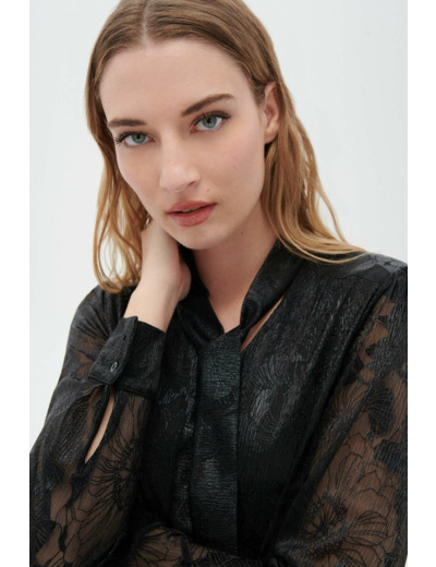 Parez-vous d’un haut grandiose pour vos grandes occasions avec le t-shirt tanaka : son jeu de matières et son col lavallière ajoutent une touche d’originalité et de sophistication à vos tenues, en association avec une jupe courte ou un pantalon sobre. - T-shirt manches longues coupe droite - Col lavallière - Longueur, 60 cm pour une taille S