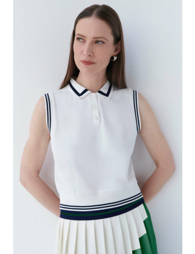 Sport et mode unissent leurs forces ! Cette année, l'été est placé sous le signe du sport. L'occasion pour Caroll de proposer une collection capsule aux allures sportives ! Un vestiaire chic et mode qui vient emprunter ses codes au sportwear. À porter sur le terrain ou au quotidien ! Découvrez le t-shirt tennis, une pièce tendance qui se démarque par sa coupe impecable. Ce modèle uni, confectionné en 100 % coton, vous charmera par son style raffiné, ainsi que par la douceur et la légèreté du tissu. - Col polo - Sans manches - Longueur totale, 54 cm pour une taille 38 - Finitions contrastantes au col, aux manches et à la taille - Fermeture par une boutonnière