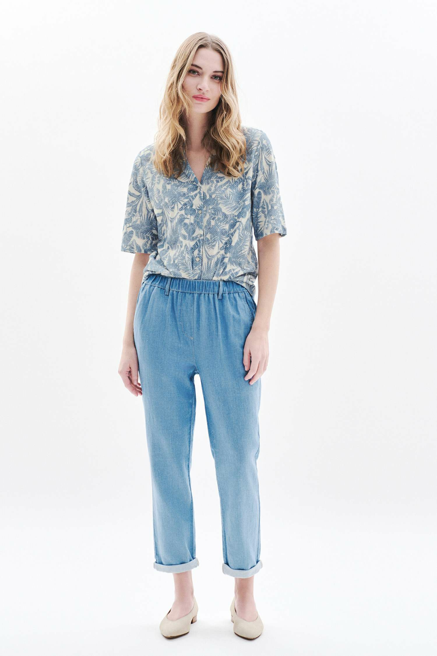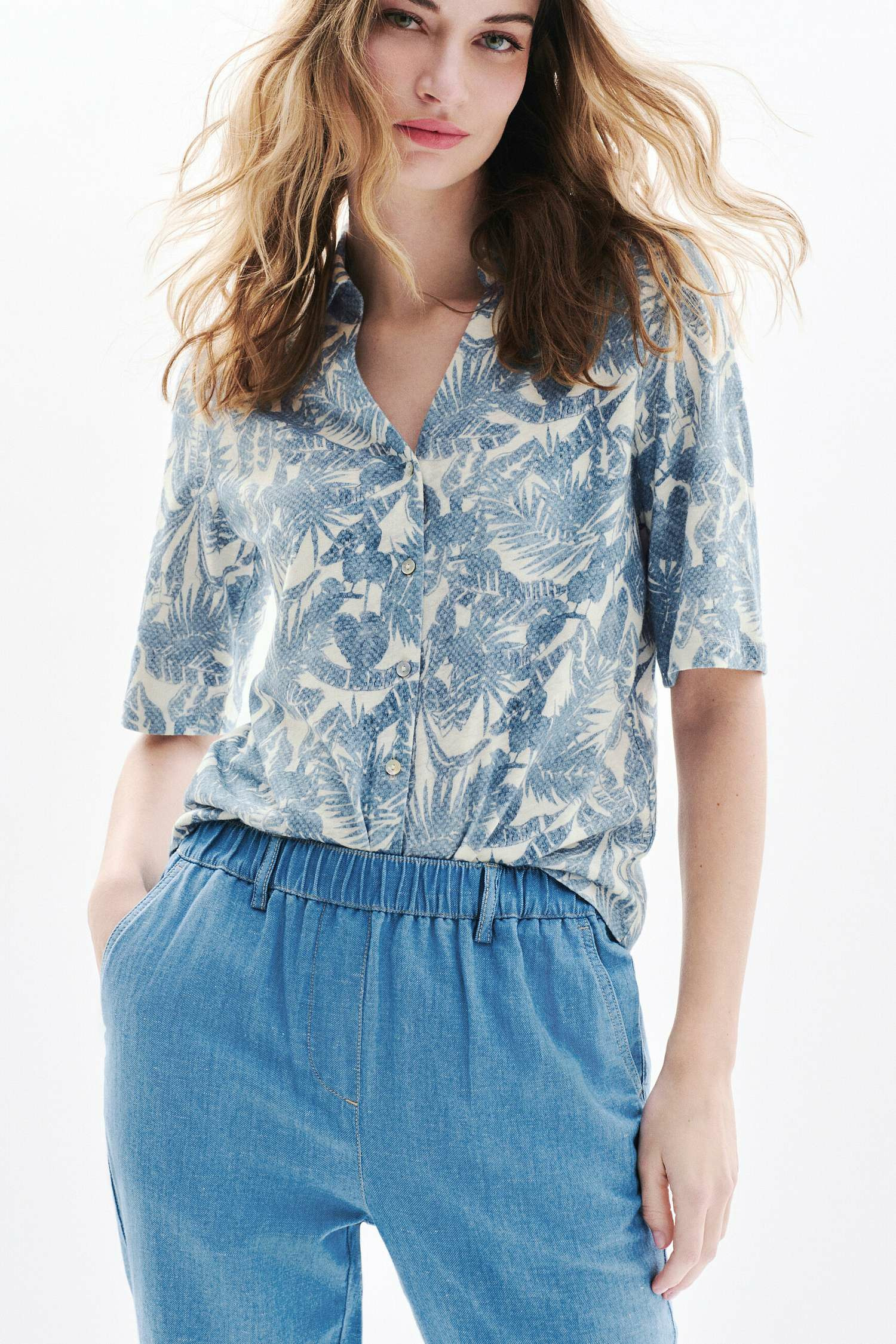 Le t-shirt Tevelina2, un essentiel pour une allure chic décontractée. Sa coupe droite s'adapte à toutes les morphologies. Confectionné en mélange de lin, il assure légèreté et confort adaptés aux variations climatiques. Parfait pour diverses occasions. - T-shirt - Coupe droite - Col chemise - Manches courtes - Longueur 60 cm pour une taille S Idées look - Le t-shirt Tevelina2 peut s'associer avec un pantalon en denim clair et des escarpins pour une tenue chic décontractée. - Ce t-shirt se marie parfaitement avec une jupe midi fluide et des sandales plates, idéal pour un look estival élégant. Conseil entretien Lavez ce t-shirt à la main uniquement, le lavage en machine est interdit. Pour le repassage : il est recommandé de repasser à basse température (maximum 110°) et l'utilisation de la vapeur est interdite. Le séchage doit se faire à l'air libre pour préserver la qualité du lin, l'utilisation du sèche-linge est interdite.