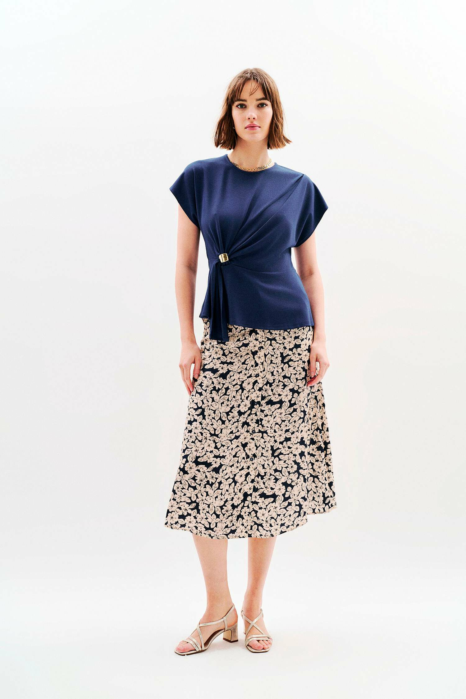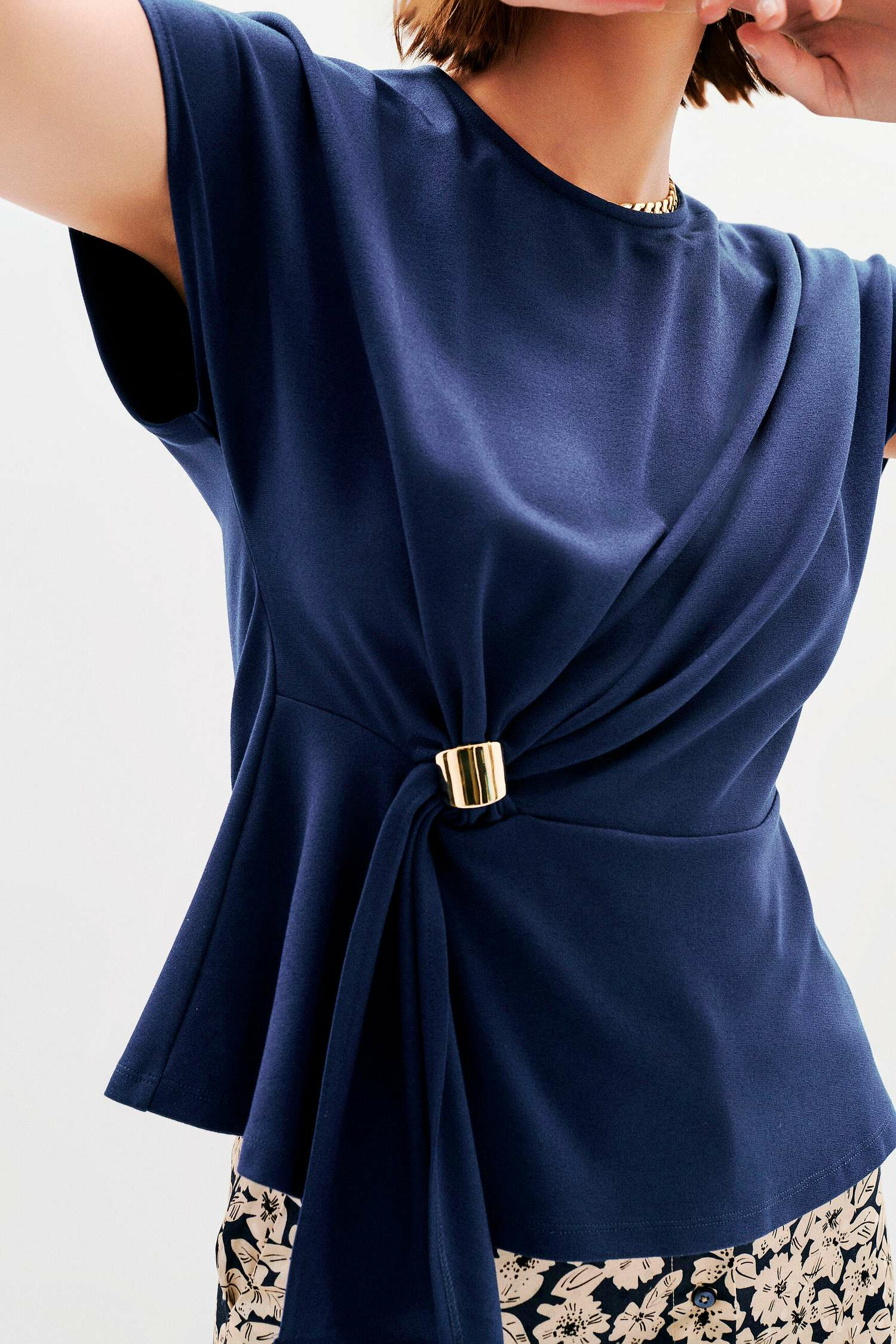 Le t-shirt Thys, parfait pour les moments importants. Idéal pour les cérémonies et grandes occasions, il s'adapte à toutes vos tenues élégantes. - T-shirt - Col rond - Manches courtes - Longueur 62 cm pour une taille S Idées look - Le t-shirt Thys peut être porté avec une jupe crayon et des escarpins pour un ensemble élégant. - Ce t-shirt s'associe parfaitement à un pantalon tailleur et des mocassins pour une tenue chic au travail. Conseil entretien Lavez votre t-shirt à 30°C en cycle délicat pour préserver la qualité de la maille. Le repassage est possible : effectuez-le à basse température, maximum 110°, et il est interdit d'utiliser de la vapeur. Il est également interdit de faire nettoyer ce t-shirt à sec ou d'utiliser le sèche-linge.