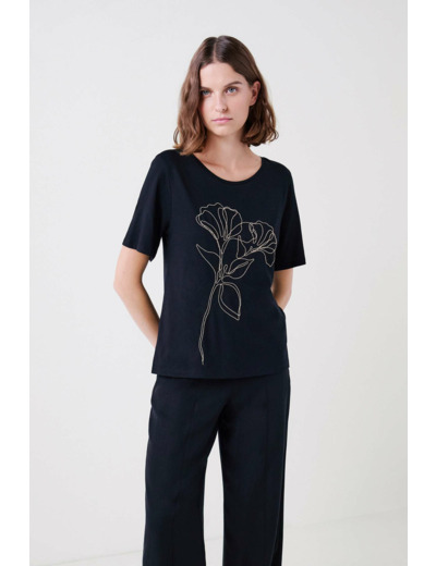 Avec sa composition 50% modal et 50% coton, le t-shirt tlada est aussi respirant que doux à porter. Sa coupe droite se marie avec un discret motif floral brodé. - Col rond - Manches courtes - Longueur 60 cm pour une taille S