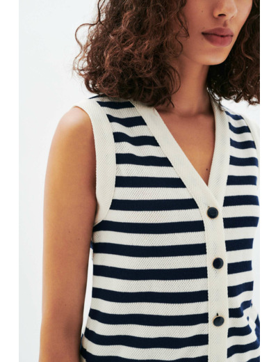Le t-shirt Tweek1 s'adapte à chaque silhouette. Conçu pour toutes les morphologies, il assure un confort quotidien et une allure élégante. - T-shirt - Col V - Sans manches - Longueur 56 cm pour une taille S Idées look - Le t-shirt Tweek1 s'accorde avec un pantalon droit uni et des mocassins en cuir. Ajoutez une veste légère pour compléter l'ensemble. - Ce haut sans manches se marie à merveille avec une jupe midi fluide et des sandales plates. Un sac structuré apporte la touche finale. Conseil entretien Lavez votre t-shirt à 30°C en cycle délicat pour préserver la qualité du tissu. Le repassage est possible : effectuez-le à basse température, maximum 110°, et il est interdit d'utiliser la vapeur. Le nettoyage à sec et l'utilisation du sèche-linge sont interdits pour ce vêtement.