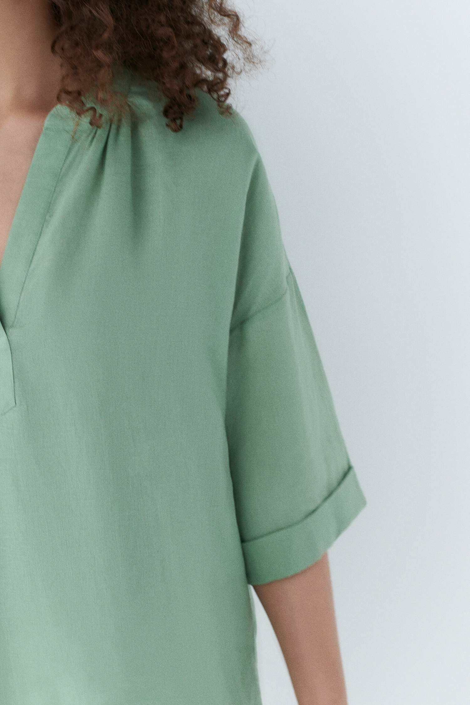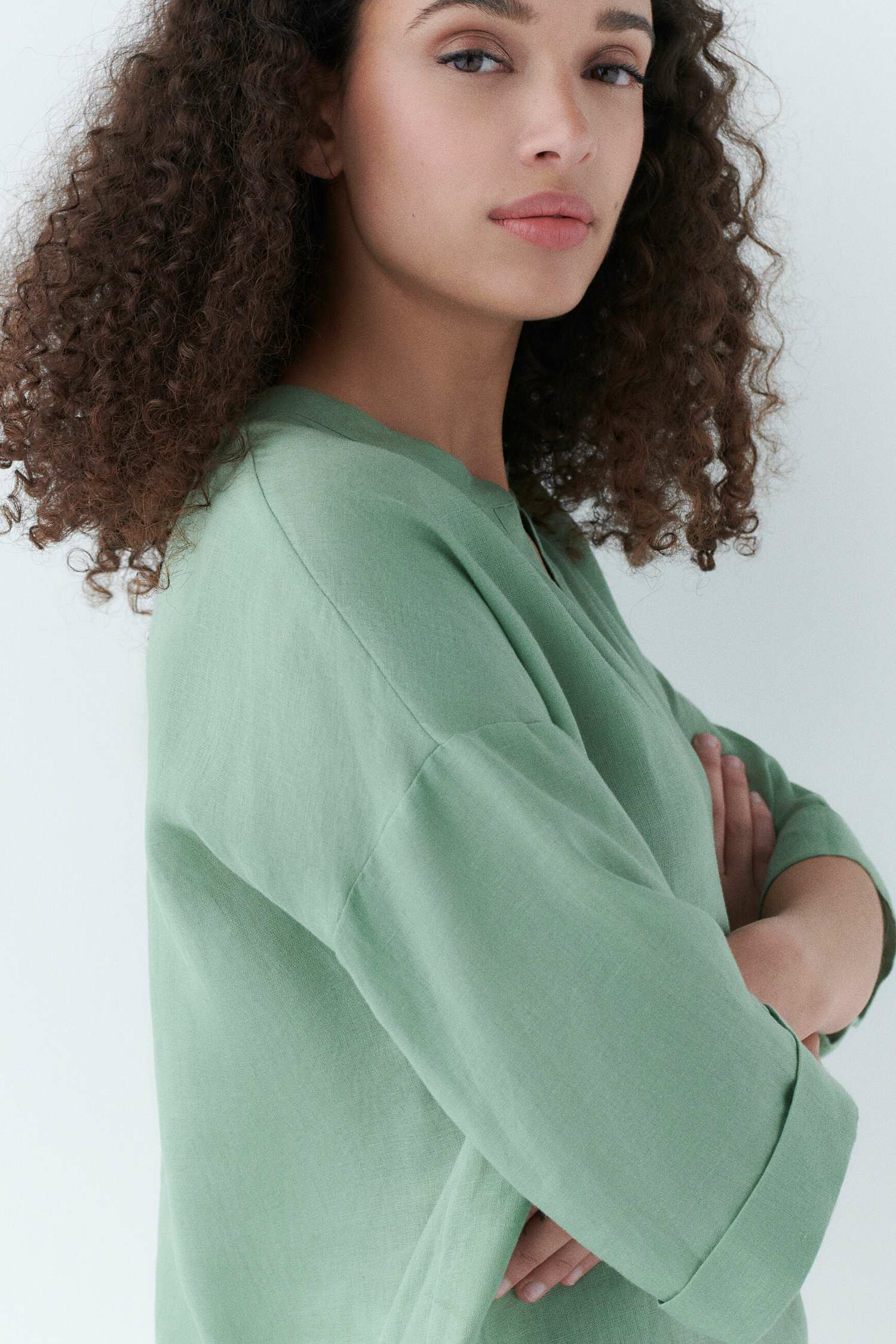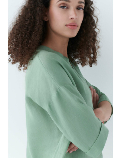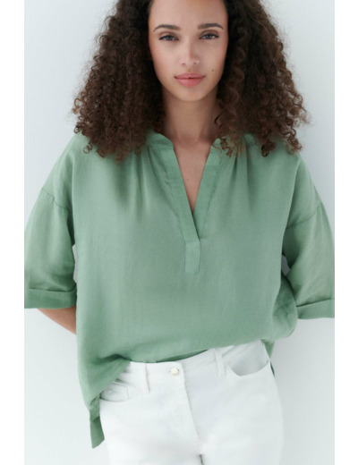Confectionné en 100% lin, la blouse caliseo est légère et confortable. Vous apprécierez sa coupe ample et sa teinte unie. - Col tunisien - Manches 3/4 - Longueur, 73 cm pour une taille S
