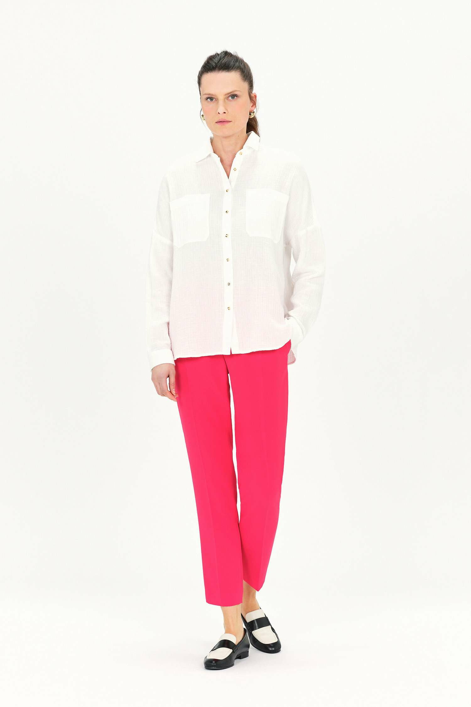 Fabriquée dans un tissu léger et respirant, la chemise colibri vous assure une liberté de mouvement tout au long de la journée. Associez-la à un pantalon chic pour un look professionnel ou à une jupe fluide pour une sortie décontractée. Les possibilités sont infinies !
