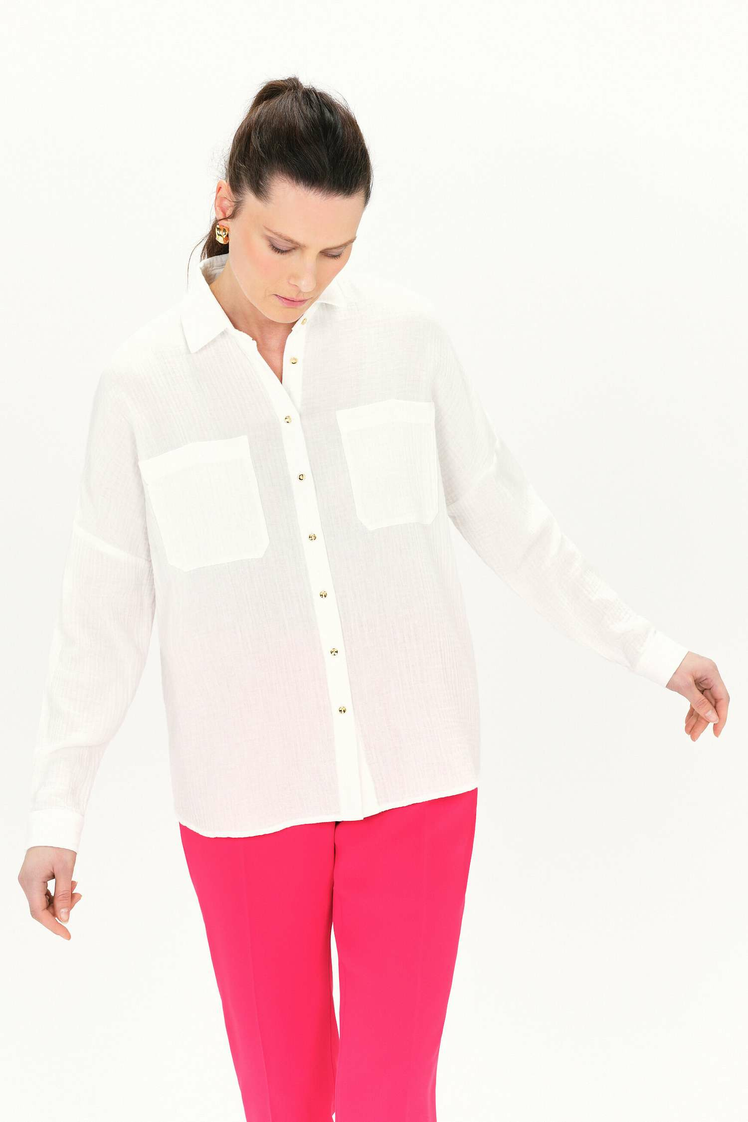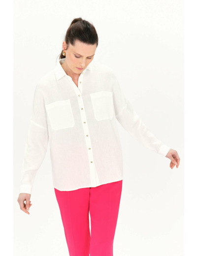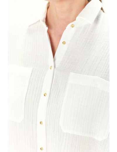 La chemise colibri allie élégance et confort grâce à sa composition en 100% coton, sa teinte unie ainsi que sa coupe droite qui convient à toute les silhouettes. - Col chemise - Manches longues à revers - Poches à rabat sur la poitrine - Longueur, 70 cm pour une taille 38 - Fermeture par une boutonnière sur patte