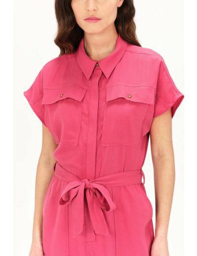 Craquez pour le style tendance de la combinaison carmen, une pièce à la coupe droite et longue, à adopter pour un look sophistiqué. Confectionnée en lyocell, une fibre biodégradable légère et résistante, cette combinaison de couleur unie marie confort et élégance. - Col chemise - Taille marquée par une ceinture à nouer - Manches courtes - Deux poches plaquées sur la poitrine - Deux poches italiennes devant - Longueur entrejambe 75 cm - Fermeture par des boutons sur le devant