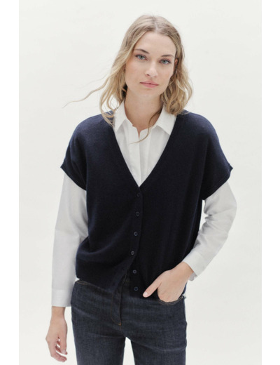 Cardigan oversize à manches courtes, en laine, cachemire et viscose mélangés. A même la peau, le cardigan oversize Lexie apportera à votre silhouette une allure très mode. Idéal à la mi-saison ce tricot tout doux se porte blousé dans un jean Flare taille haute ou droit, fermé sur une chemise en popeline et un pantalon cigarette, pour une dégaine boyish tendance. - Cardigan oversize à la forme T et encolure V - Fermeture par 6 boutons ton sur ton - Finitions bord-côtes - Longueur, 54 cm pour une taille S