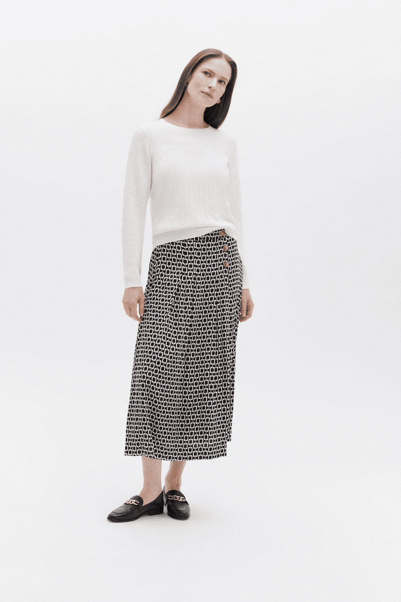 Caroll vous propose sa toute nouvelle déclinaison de l’intemporelle jupe longue. À porter avec une blouse ou un t-shirt à manches longues, c’est la jupe parfaite pour apporter une touche originale à votre look.
