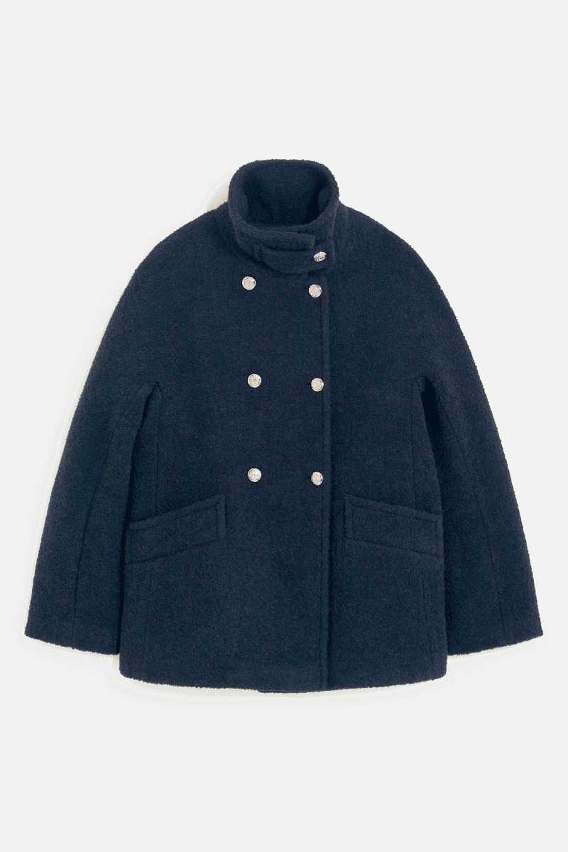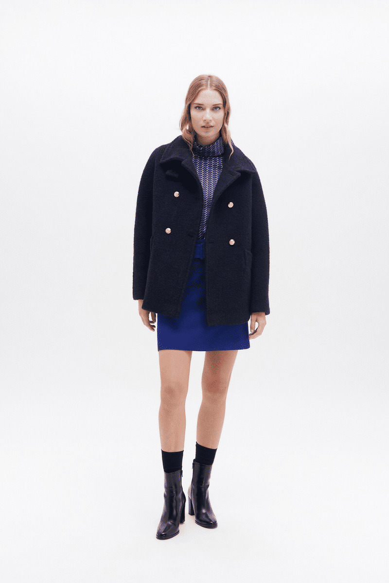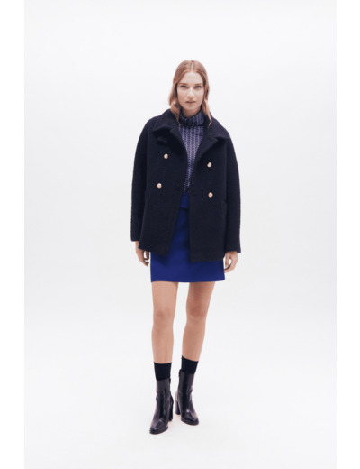 - Manteau court à col montant fermé par un bouton