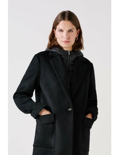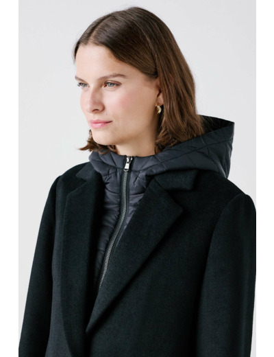 Manteau 2 en 1 en laine mélangée avec parementure matelassée façon doudoune fine. Osez la tendance sport chic avec ce manteau 2 en 1. Un manteau droit à col tailleur, contrasté par une allure sportswear de la parementure amovible façon doudoune fine à capuche. Idéal pour vos balades du week-end, retirez la parementure pour vos looks élégants de bureau.
