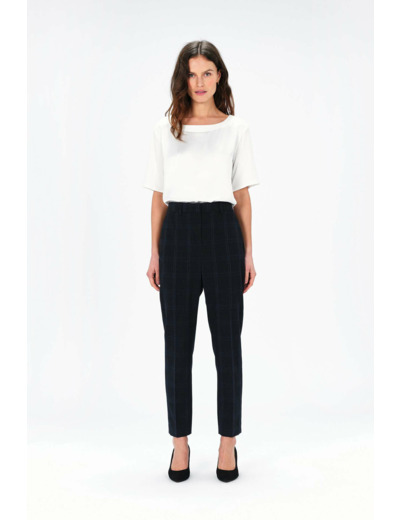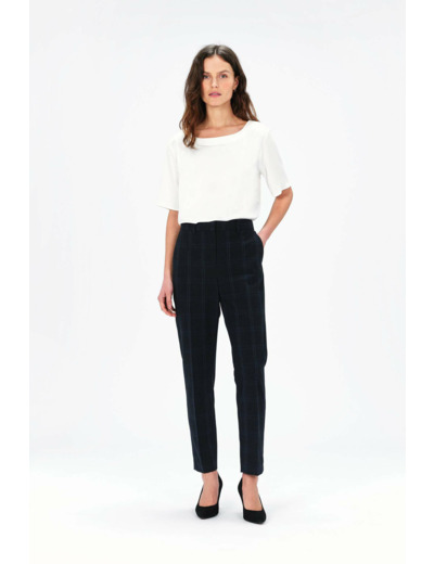 Pantalon fuselé à carreaux, coupe cigarette à l'allure formelle. Modèle taille haute et élastiqué. - Ceinture à même avec passants - Poches italiennes devant et passepoilées au dos - Longueur entrejambe 70 cm - Fermeture par un zip sous patte