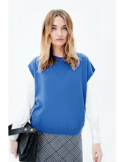 Pour une touche champêtre dans votre garde-robe, optez pour le pull mathilde. Son tissu en laine le rend confortable et agréable. Ses manches courtes s’accordent parfaitement avec une chemise ou un t-shirt à manches longues. Accordez-le avec une couleur claire pour une touche d’élégance. - Pull à col rond et coupe droite - Manches courtes - Finitions bord-côtes - 100% laine - Longueur totale, 58 cm pour une taille S