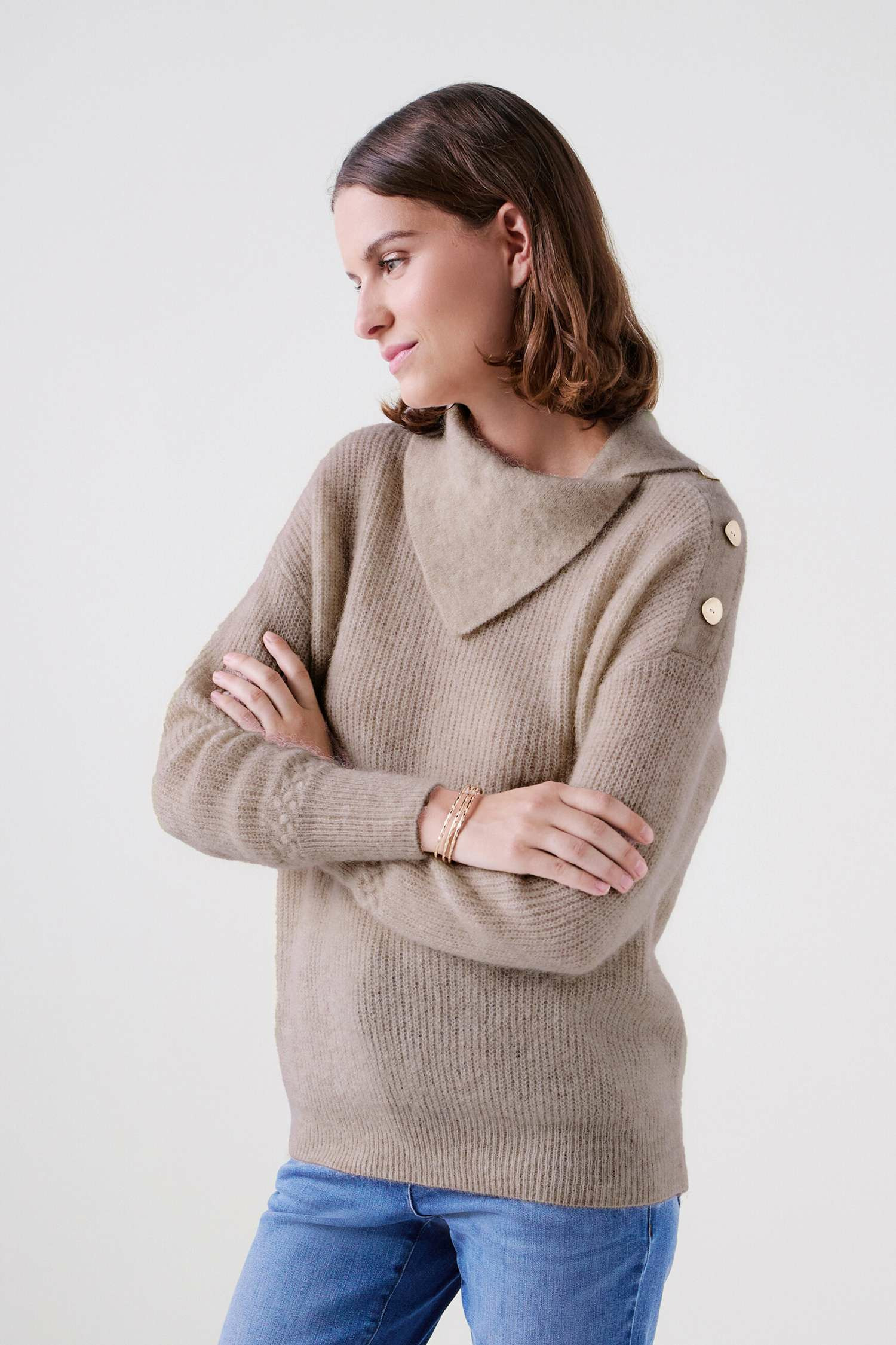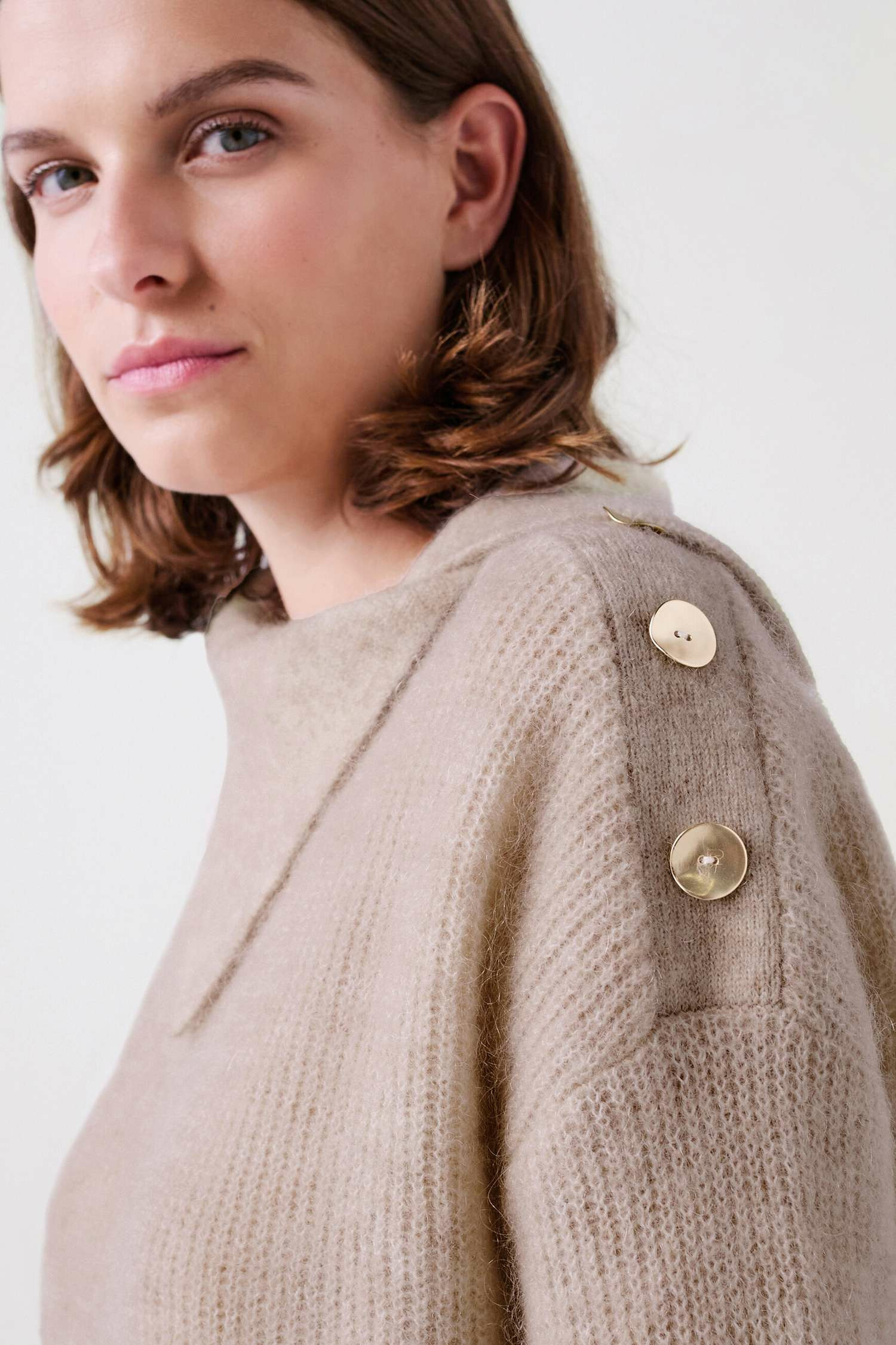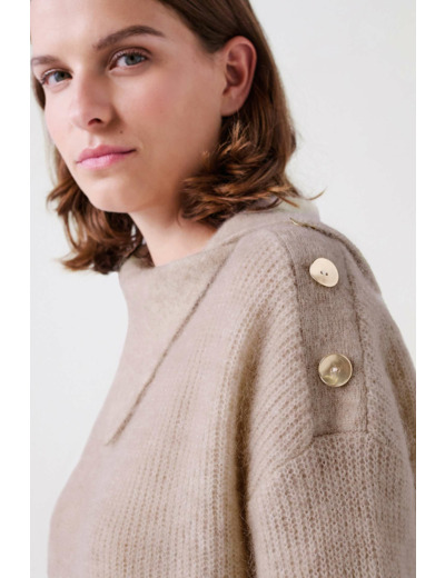 Misez sur le confort et l'élégance du pull melkior. Son col asymétrique lui confère un look unique. Pour un look simple mais chic, optez pour un jean et des chaussures à talons. - Pull à la coupe ample - Col à revers ouvert sur le côté - Manches longues - Boutons effet corne à l'emmanchure - Maille fantaisie aux poignets - Longueur, 60,5cm pour une taille S