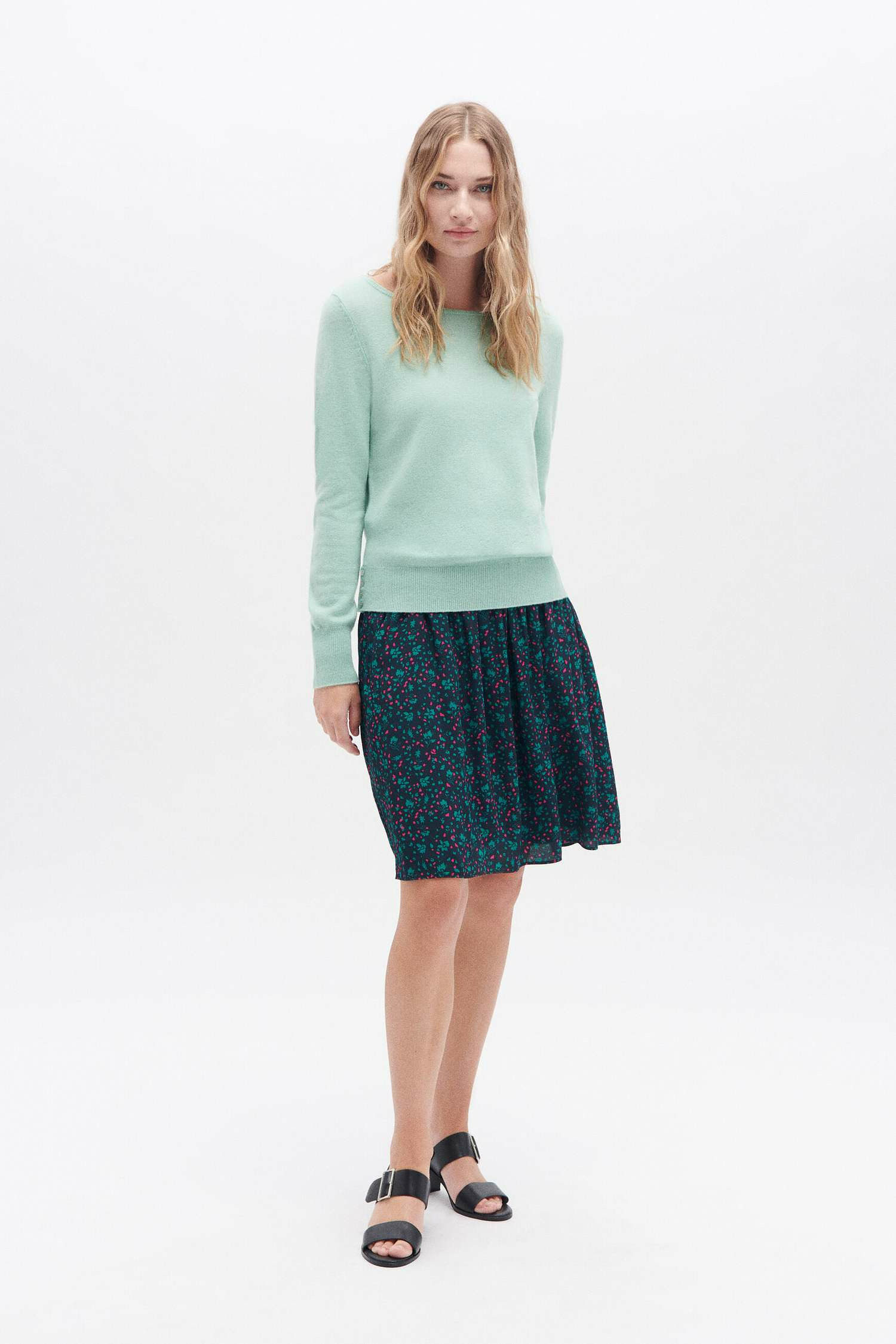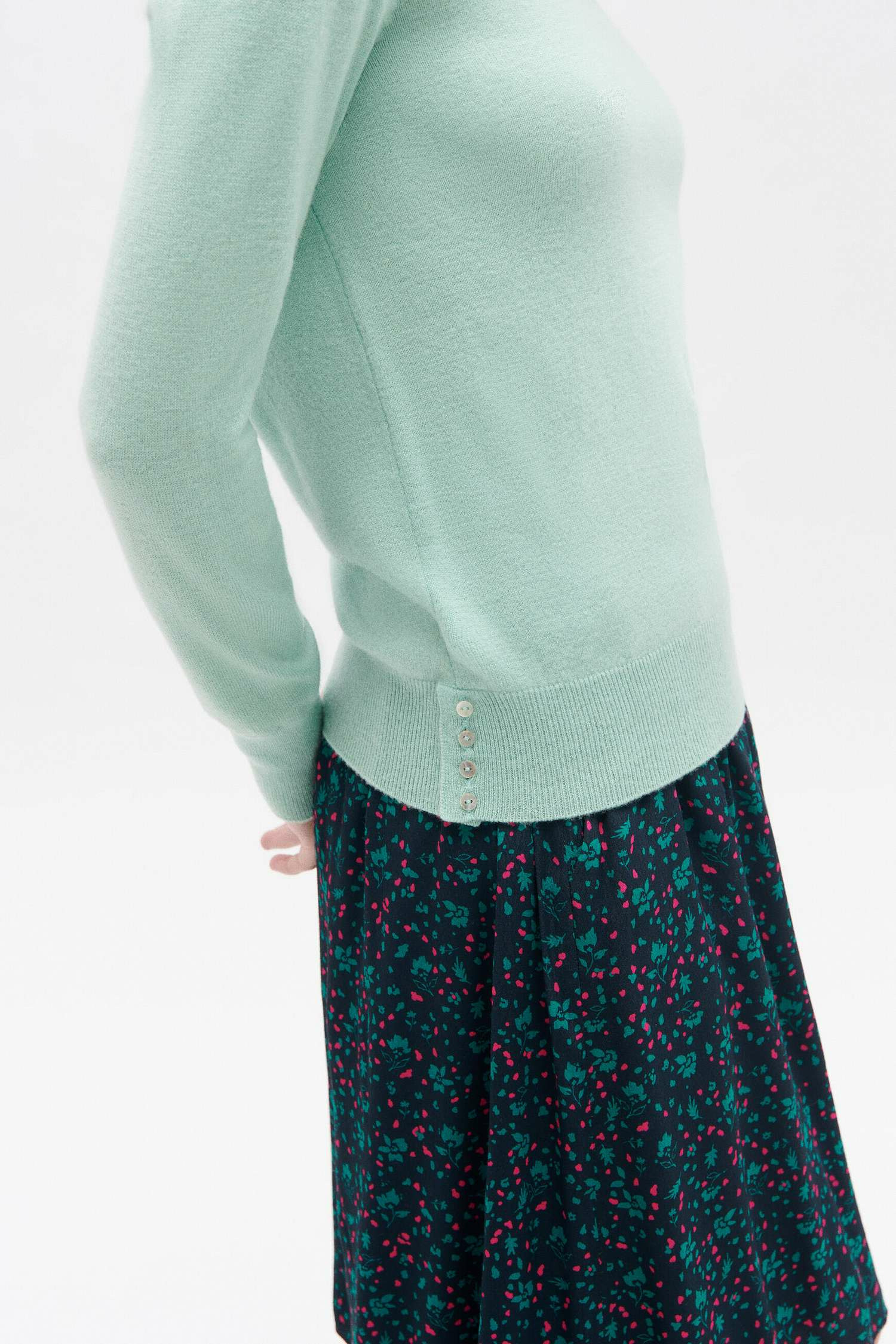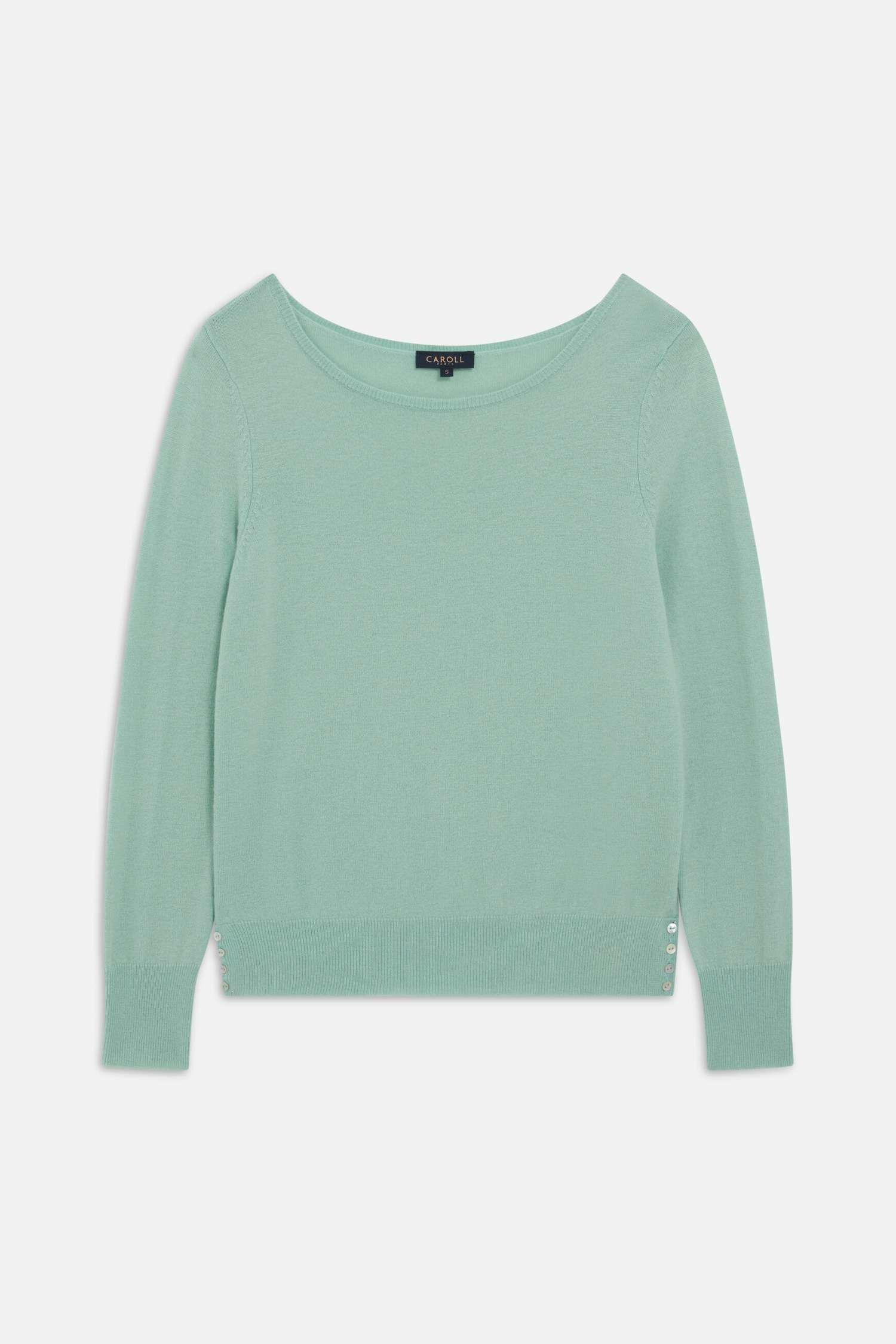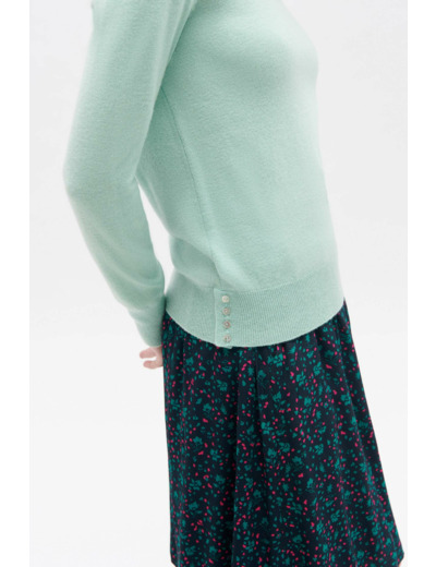 Ajoutez une pièce colorée à votre dressing grâce aux teintes pastel du pull sofie. Conçu en laine, il vous assure confort et chaleur par temps frais et s’accompagne d’un jean ou d’une jupe selon les occasions. - Pull fin, 100 % laine, coupe droite - Encolure arrondie large, finement doublée - Manches longues - Finitions bord-côtes - Rangée verticale de quatre boutons nacrés sur le bas du pull