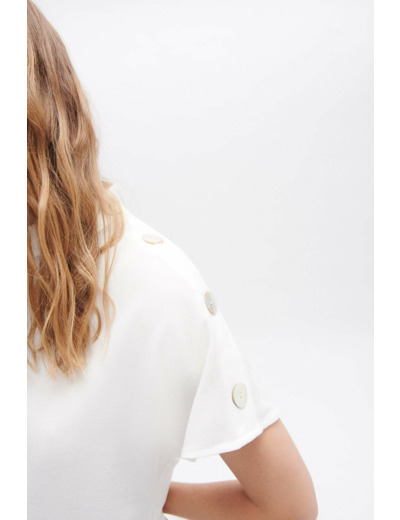 Optez pour la simplicité du t-shirt telvira. La subtilité, ses boutons nacrées qui habille délicatement l'épaule, pour un look tout en finesse. - T-shirt à la coupe droite - Col montant - Manches courtes - Boutons nacrés à l'épaule - Longueur, 61 cm pour une taille S