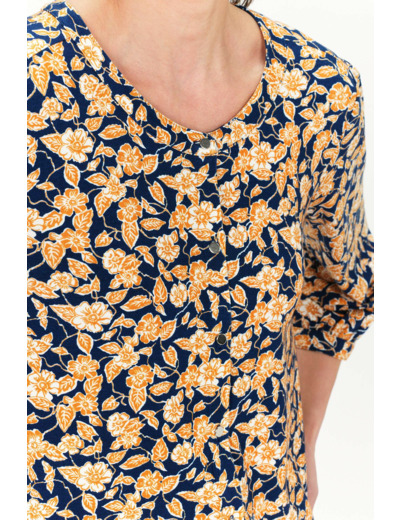 Soyeux et fluide grâce à sa composition en viscose mélangé, le t-shirt tifania affiche un imprimé fleuri raffiné, sublimant sa coupe droite élégante. - Col V - Manches 3/4 - Finitions bord-côtes - Longueur, 60 cm pour une taille S - Fermeture par une boutonnière devant