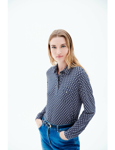 Adoptez un t-shirt à manches longues aux faux airs de chemise et misez sur le confort, sans faire de compromis sur la féminité. En jeans-basket, en chino et mocassins ou en jupe et bottines, le t-shirt tlucia s’accorde à toutes les pièces de votre dressing avec l'élégance qui le caractérise. - T-shirt coupe droite - Col polo - Manches longues fermées par un bouton - Poche sur la poitrine - Longueur, 60 cm pour une taille S