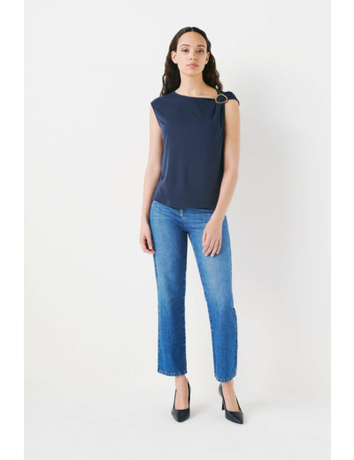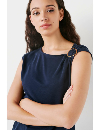Découvrez tnala, un t-shirt confectionné en mélange de modal, une matière particulièrement confortable et respirante. Haut uni à la coupe droite. - Col rond - Sans manches - Épaulière gauche froncée et ornée d'une boucle en métal - Longueur, 60 cm pour une taille S