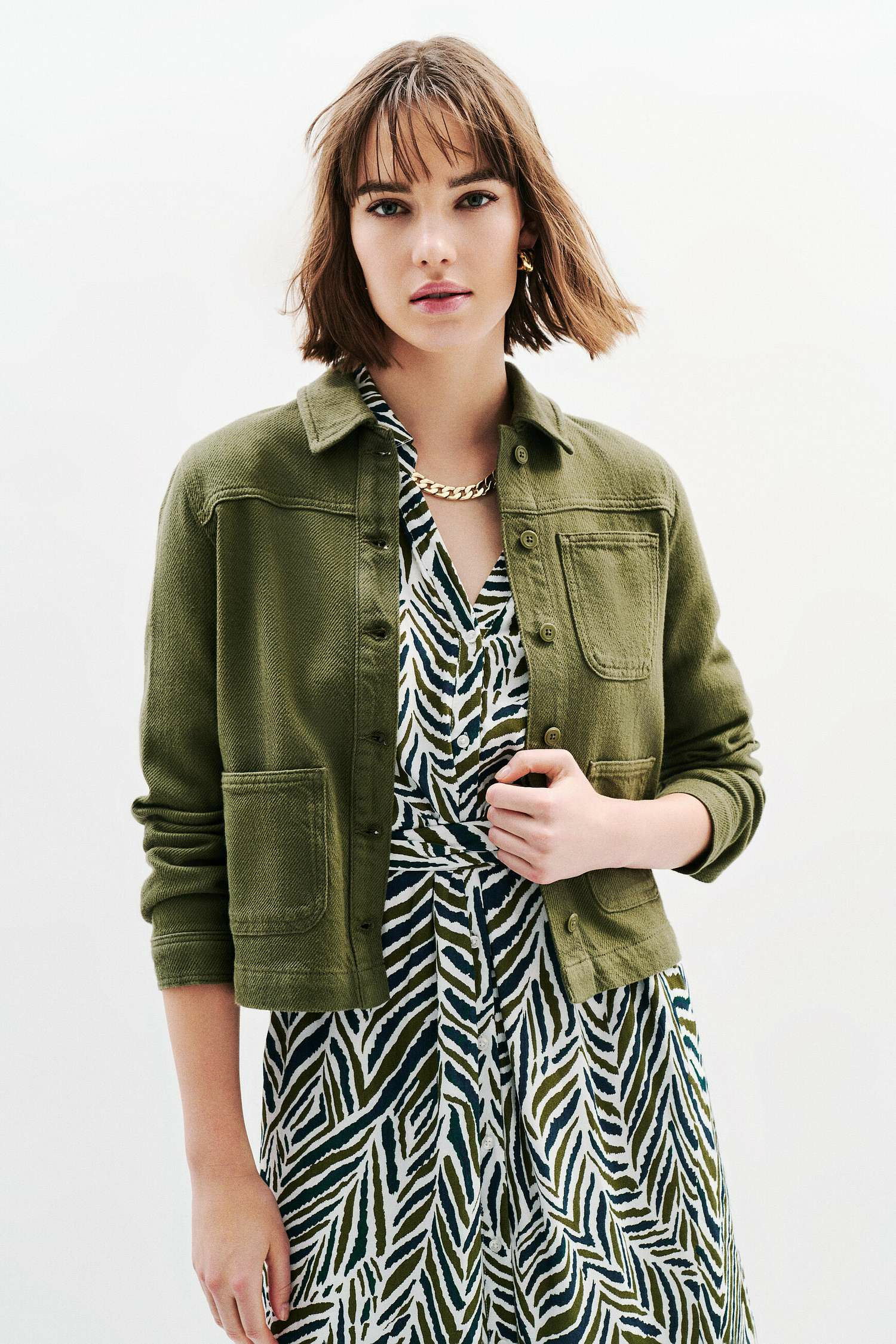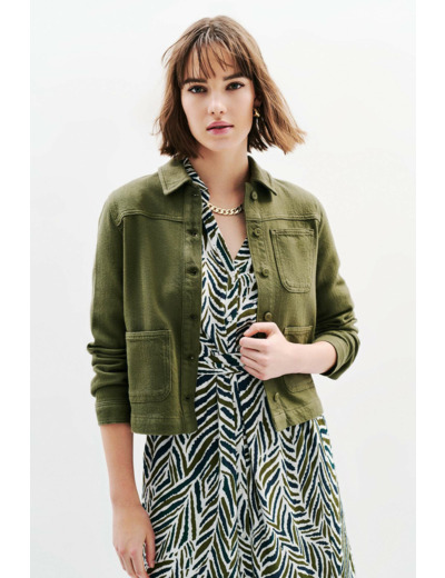 La veste worker au top de la tendance, se dévoile dans une coupe féminisée. Cropped et plus près du corps que la veste de travail authentique, cette surchemise en toile de coton mélangé se décline en écru et en bleu éléctrique pour s'adapter à tous les styles. - Veste col chemise à la coupe droite - Fermeture par une boutonnière ton sur ton - Poches plaquées à la poitrine et la taille - Manches longues fermées par un bouton - Découpes surpiquées devant, dos et manches - Longueur, 54 cm pour une taille 38