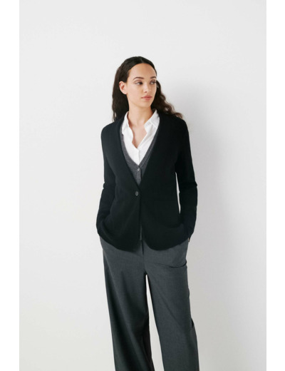 Adoptez la veste mdiane, confectionnée en 100 % laine. Elle présente une coupe mi-longue et une couleur chic, vous offrant une allure inimitable. - Col V - Manches longues - Poches plaquées sur la taille - Longueur 70 cm pour une taille S - Fermeture par un bouton central