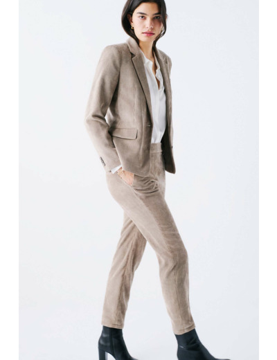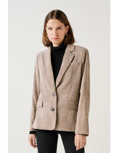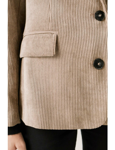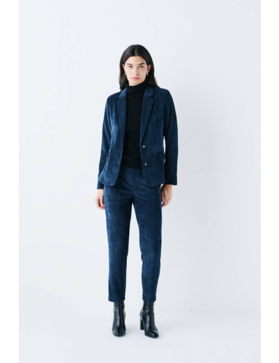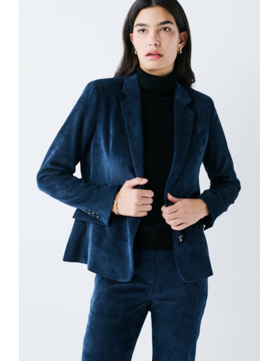 La veste vambre2 est confectionnée en mélange de polyester. Sa couleur unie et son tissu effet velours vous confèrent une allure chic et sophistiquée. C'est une pièce incontournable pour une tenue élégante et structurée. - Col tailleur - Manches longues - Boutons dorés ornementaux aux poignets - Longueur 64 cm pour une taille 38 - Doublure 100 % viscose - Doublure manches 100 % acétate - À associer au pantalon Pnoora