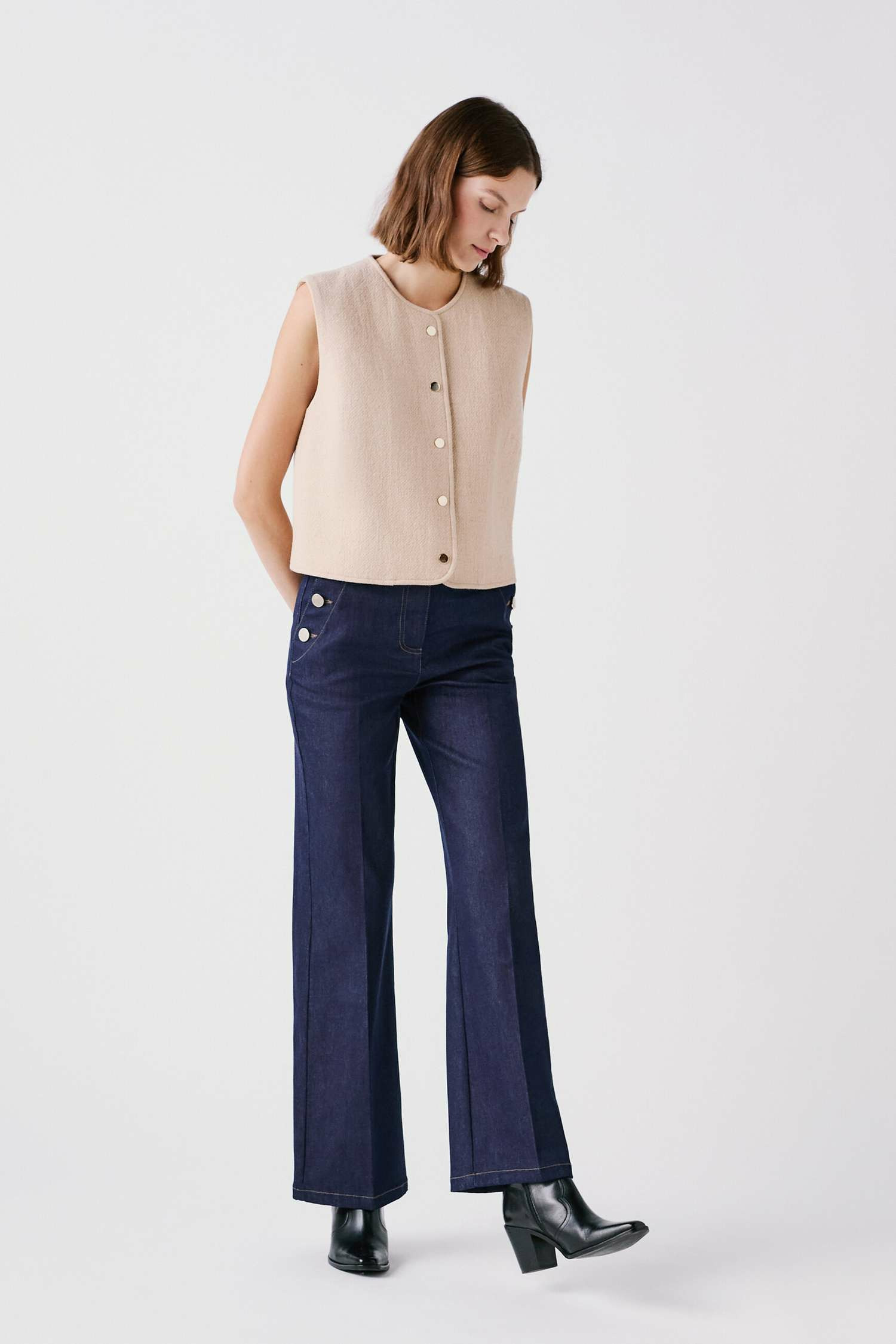 La veste virgule est confectionnée dans un mélange sophistiqué de laine à la fois résistant et confortable. Elle présente une couleur unie et intemporelle. Sa coupe lui confère un style moderne et épuré, parfait pour un look chic et décontracté. - Sans col - Sans manches - Longueur 49,5 cm pour une taille S - Fermeture par une boutonnière - Doublure 100% coton