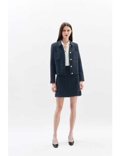 La veste Vonetta transforme le workwear tout en élégance. Avec son effet tweed, elle crée un style distinctif. Sa coupe droite et courte souligne la taille, convenant à toutes les morphologies. Un style chic pour chaque journée au bureau. - Veste courte - Coupe droite - Col chemise - Manches longues - Longueur 53 cm pour une taille 38 - Fermeture boutonnée - Tailles du 34 au 44 - À associer à la jupe Janya1 - Doublée Idées look - La veste Vonetta se marie bien avec une jupe crayon et des escarpins pour un ensemble élégant au bureau. - Ce blazer peut être combiné avec un pantalon ajusté et des ballerines pour une tenue chic décontractée. Conseil entretien Pour entretenir votre veste Caroll, il est impératif de la confier à un professionnel pour un nettoyage à sec en pressing. Le lavage, que ce soit en machine ou à la main, est interdit. Concernant le repassage : il est possible mais doit se faire à basse température (maximum 110°), et l'utilisation de la vapeur est interdite car elle peut causer des dommages irréversibles. Enfin, l'usage du sèche-linge est également interdit.