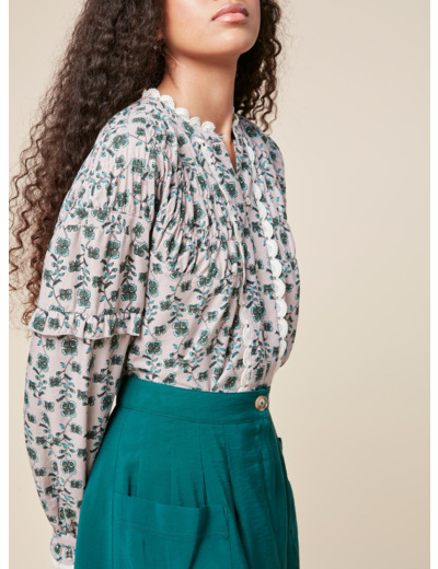 - Imprimé exclusif sur coton flammé, esprit "block print" indiens
