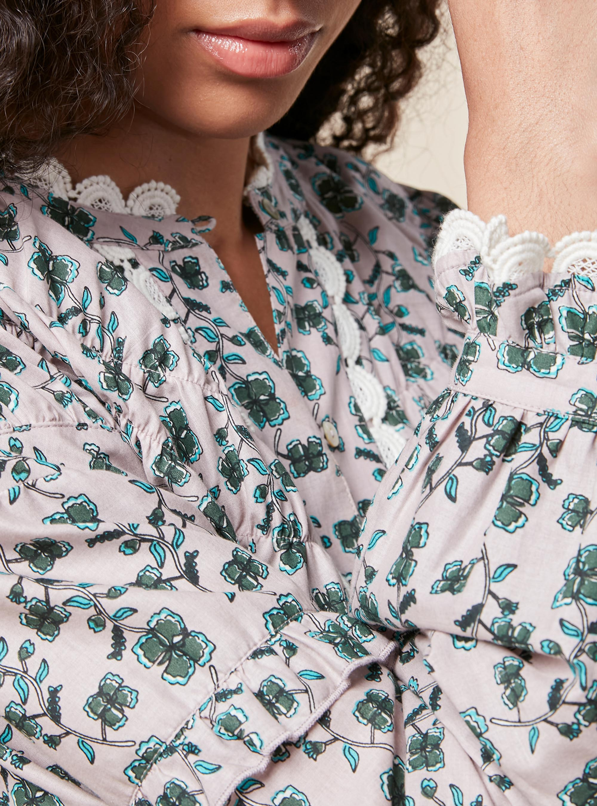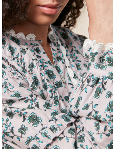 - Dentelle incrustée sur le col, les poignets et la patte de boutonnage sur le milieu devant
