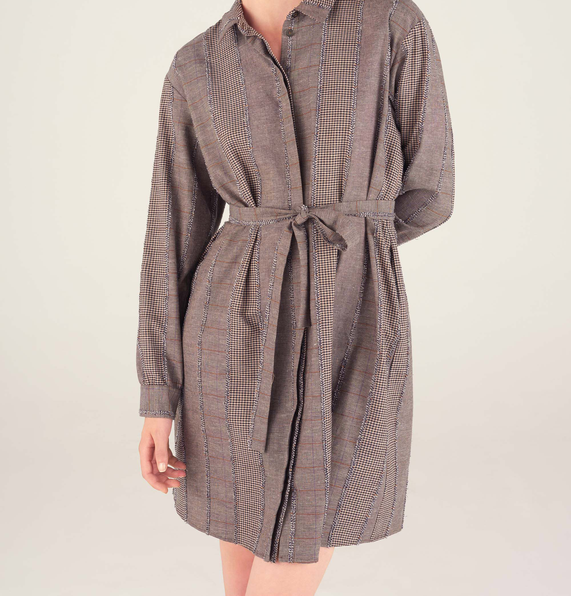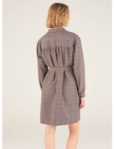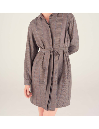 - Col chemise, ouverture boutonnée et cachée devant