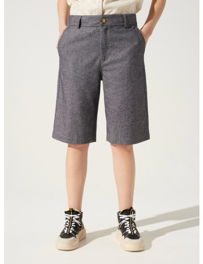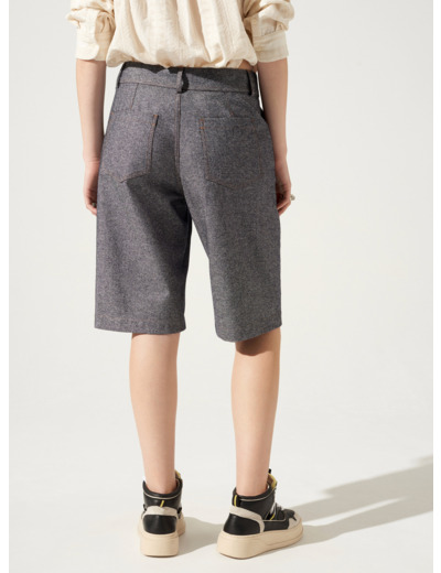 • Caractéristiques clés : Bermuda droit longueur genou et doublé jusqu'à mi-cuisses, idéal pour porter en mi-saison ou l'hiver avec des collants. Vous aimerez ses poches italiennes devant et plaquées au dos.