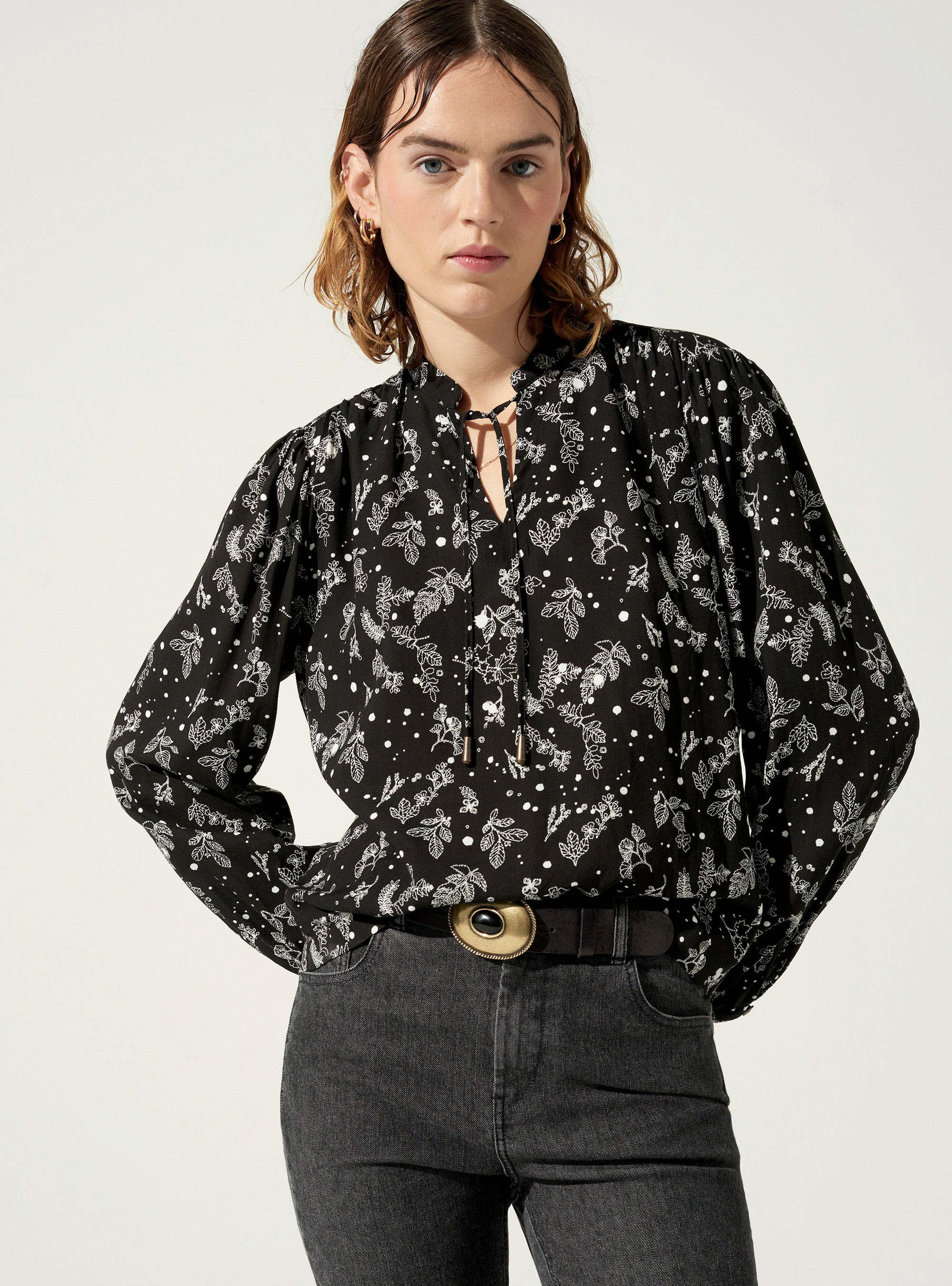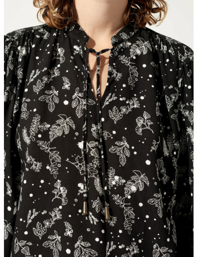 • Caractéristiques clés : Blouse ample à l'encolure ronde qui se noue à l'aide de liens. Détails de fronces devant et dans le dos. Imprimé exclusif « Herbarium » sur une toile de viscose douce et respirante. Un imprimé intemporel et automnal.