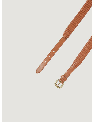 • Caractéristiques clés : Ceinture plissée en cuir souple de vachette. Largeur 2,5 cm et boucle en laiton.